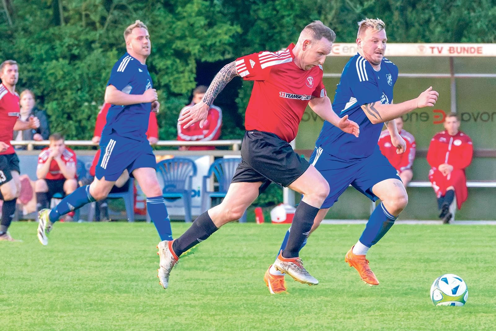 Stephan Eling konnte kurz vor der Pause das 4:0 für Bunde III gegen den TuS Holthusen erzielen. Damit war das Spiel im Grunde schon gelaufen. © Foto: Jungeblut