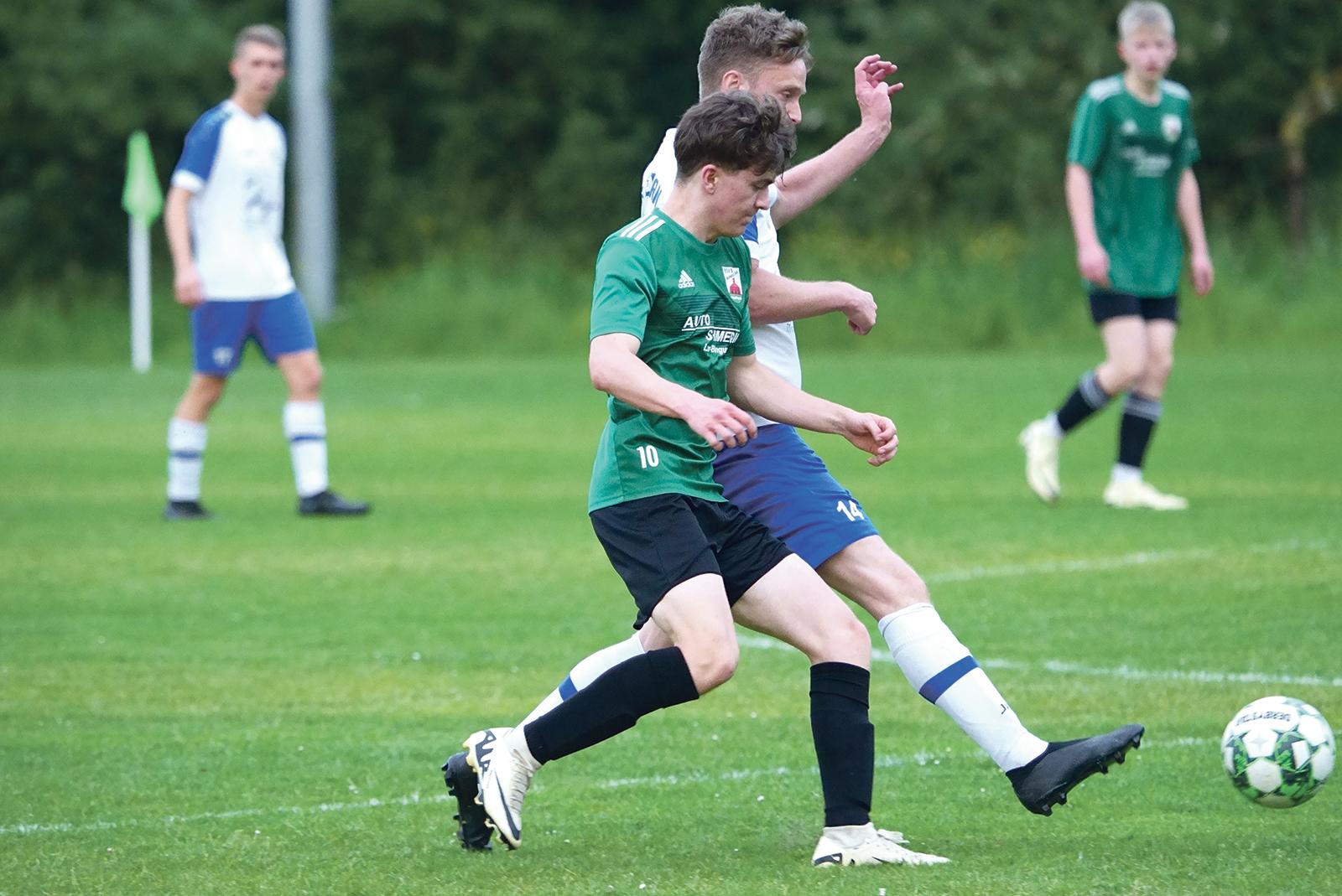 Mika Vry (vorne, grünes Trikot) brachte die Bingumer gegen Detern früh in Führung. Am Ende sollte es nicht reichen. © Foto: Zuidema