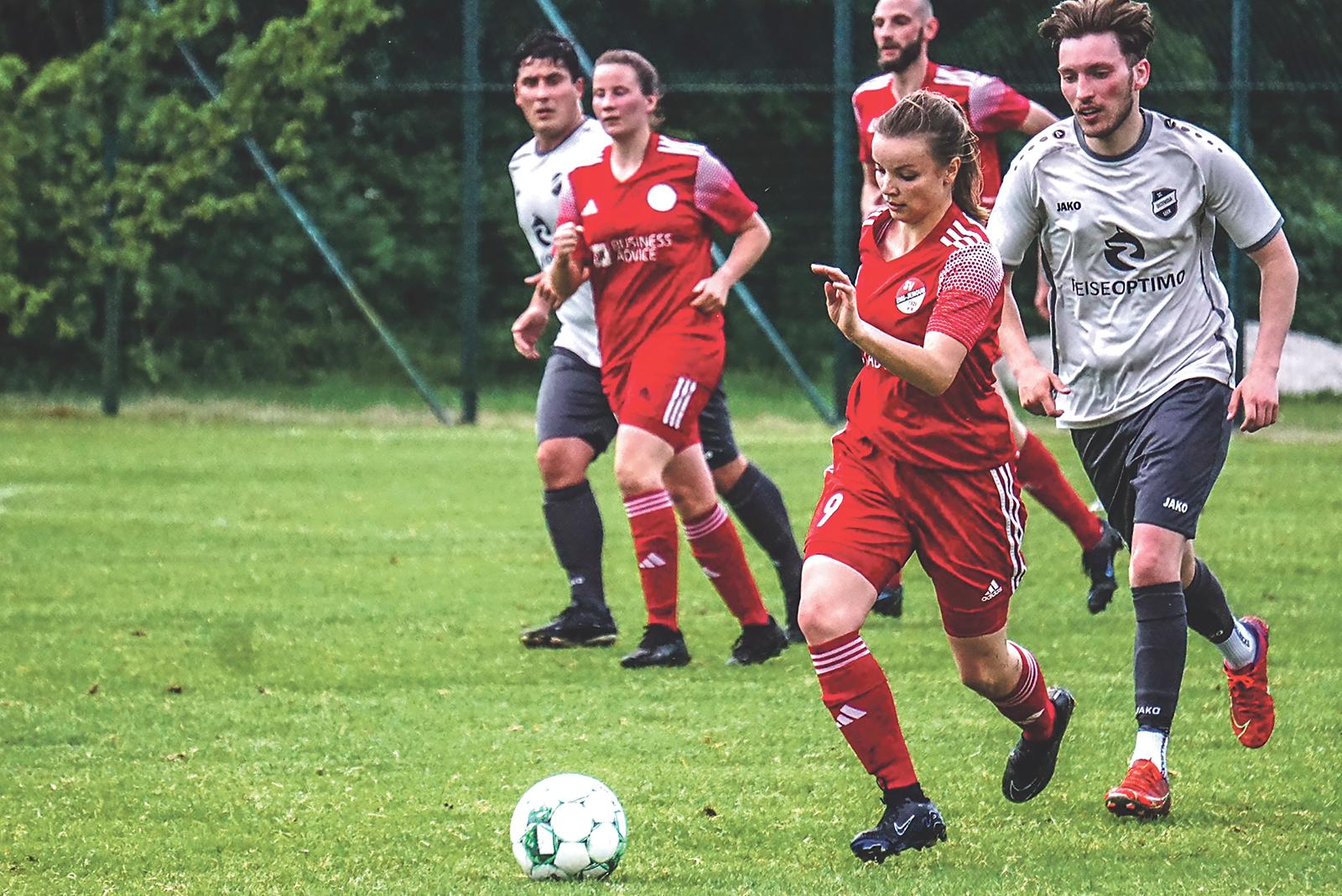 Die SG Ems-Dollart trat bei der SG Ostfrisia Leer mit den Bezirksliga-Spielerinnen Frauke Schröder (am Ball), Annika Reck (hinten) und später auch Jana Frieling (nicht im Bild) an.  © Foto: privat