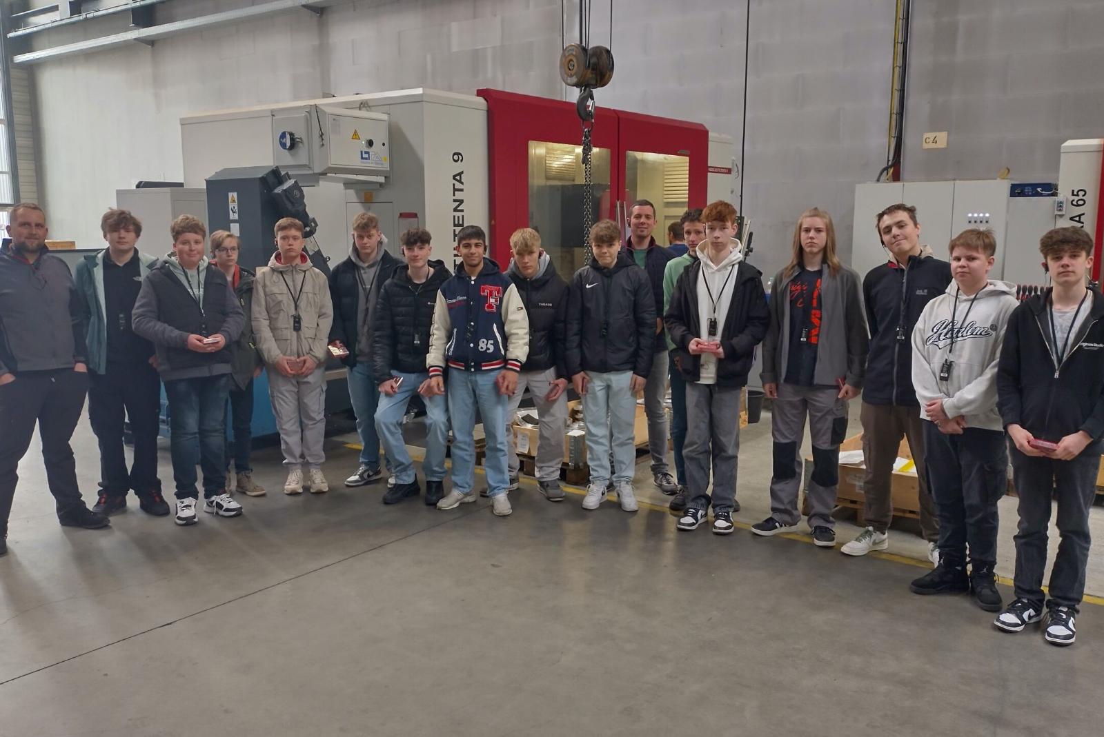 Im Anschluss an den Vortrag erhielt jeder Schüler ein Headset, um trotz des Maschinenlärms in den Produktions- und Fertigungshallen den Ausführungen folgen zu können. "Während der Führung erhielten die Schüler zahlreiche inspirierende Eindrücke von den großen Fräsmaschinen und den verschiedenen Fachrichtungen, die bei Nyblad angeboten werden", so die Mitteilung. Dazu zählen Ausbildungsberufe wie Industriekaufmann, Konstruktionsmechaniker, Technischer Produktdesigner, Industriemechaniker, Zerspanungsmechaniker, Elektroniker für Betriebstechnik und Mechatroniker.
