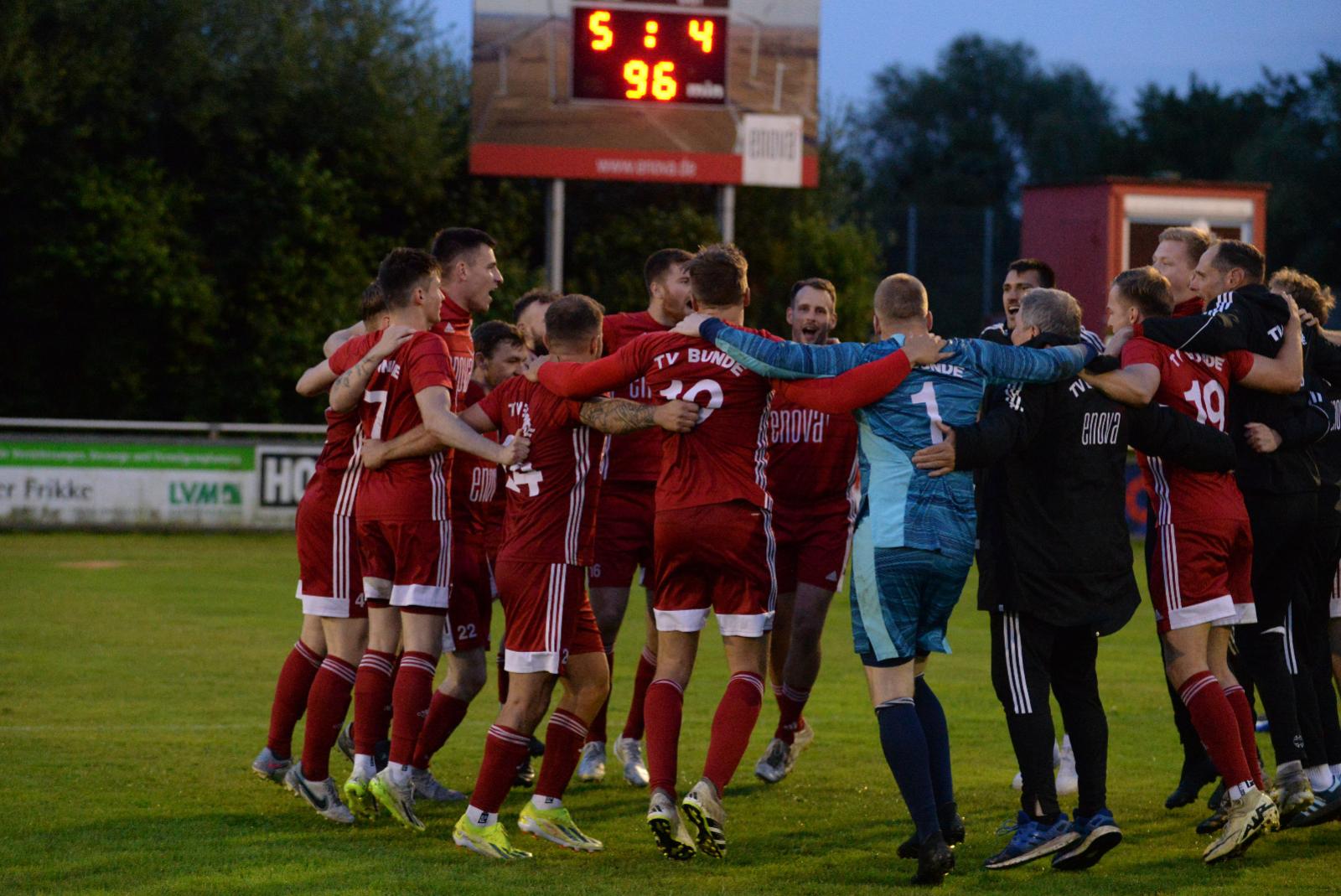 Der TV Bunde hat den Einzug ins Viertelfinale des Ostfriesland-Cups geschafft. Am Mittwochabend glichen die Rheiderländer im Achtelfinale gegen den TuS Middels in der Nachspielzeit zum 1:1 aus und gewannen mit 5:4 nach Elfmeterschießen.