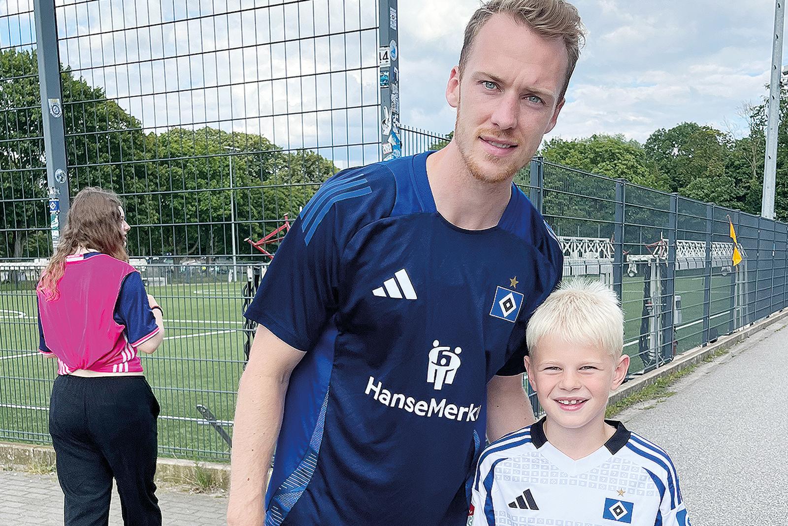Noch in der Sommerpause konnte sich F-Jugend-Fußballer Paul Winzenborg vom TV Bunde Fotos und Autogramme von seinen HSV-Idolen sichern. Unter anderem Kapitän Sebastian Schonlau (Foto) traf der junge Rheiderländer am Volksparkstadion. Gemeinsam mit Großmutter Ute Buß ...