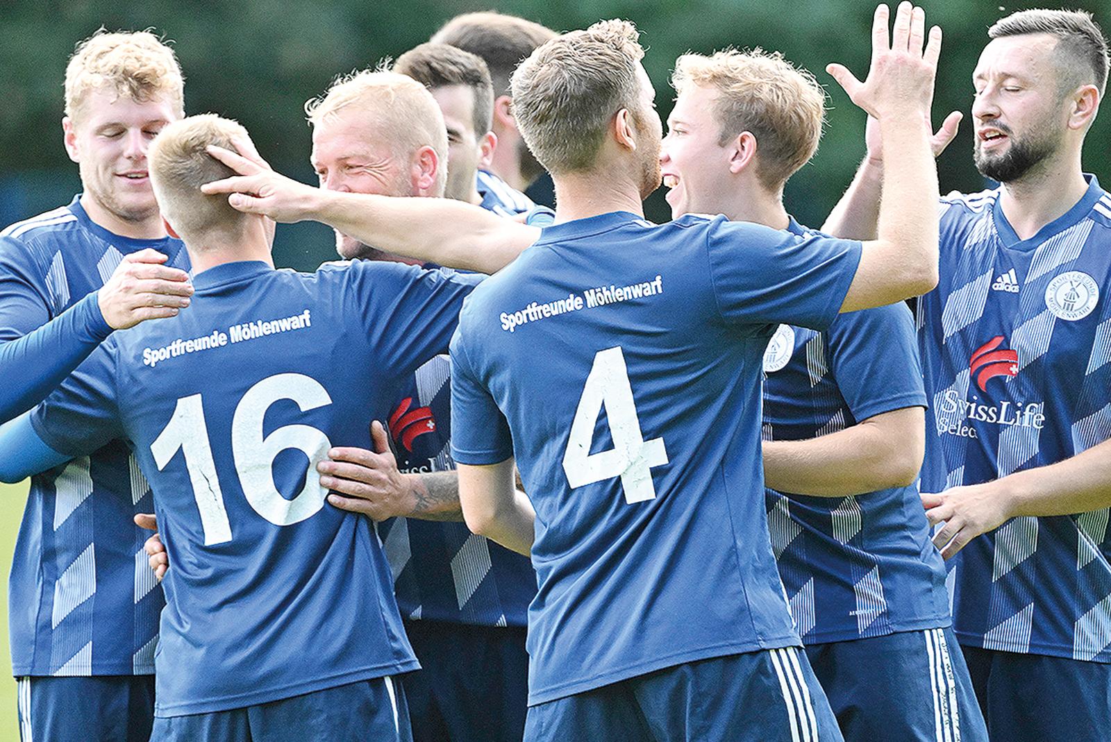 Nicht einmal drei Wochen her ist es, dass die Sportfreunde Möhlen-?warf punktlos am Tabellenende der Ostfrieslandklasse B4 standen. Nun sieht die Welt ganz anders aus. Mit der SG Kickers Leer II/Germania Leer III haben die Rheiderländer ...