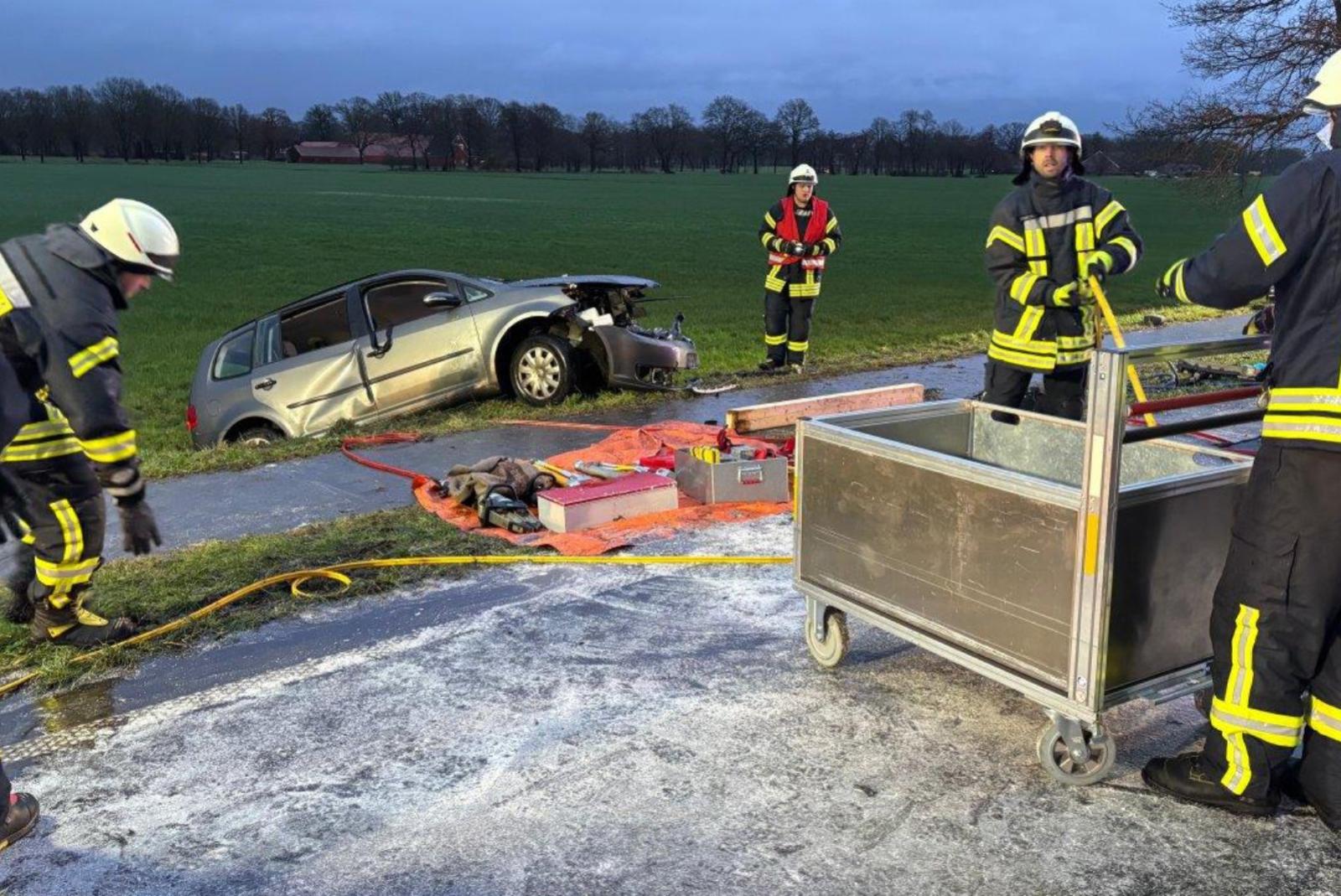 Bei dem Zusammenstoß wurde die 62-Jährige schwer verletzt und musste mit einem Rettungshubschrauber in ein Krankenhaus gebracht werden. Der Unfallverursacher verstarb trotz aller Bemühungen des Rettungsdienstes noch an der Unfallstelle. Die weiteren Insassen des entgegenkommenden Autos, laut Polizei drei Männer im Alter von 20, 27 und 40 Jahren, wohnhaft in Westoverledingen und Oldenburg, wurden ebenfalls verletzt und in die umliegenden Krankenhäuser gebracht.