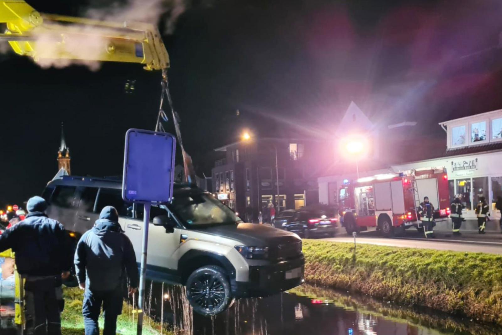 Die 62jährige Autofahrerin wollte gestern Abend von einem Parkplatz in Höhe einer Pizzeria nach rechts auf die Straße Untenende abbiegen. Hierbei verlor sie laut Polizei die Kontrolle über ihr Fahrzeug und fuhr in den Kanal. Vier Ersthelfer sprangen umgehend in den Kanal. Sie halfen der Fahrerin und ihrem gleichaltrigen Ehemann aus dem Fahrzeug, von dem nur noch das Dach zu sehen war, und zogen sie aus dem Wasser.