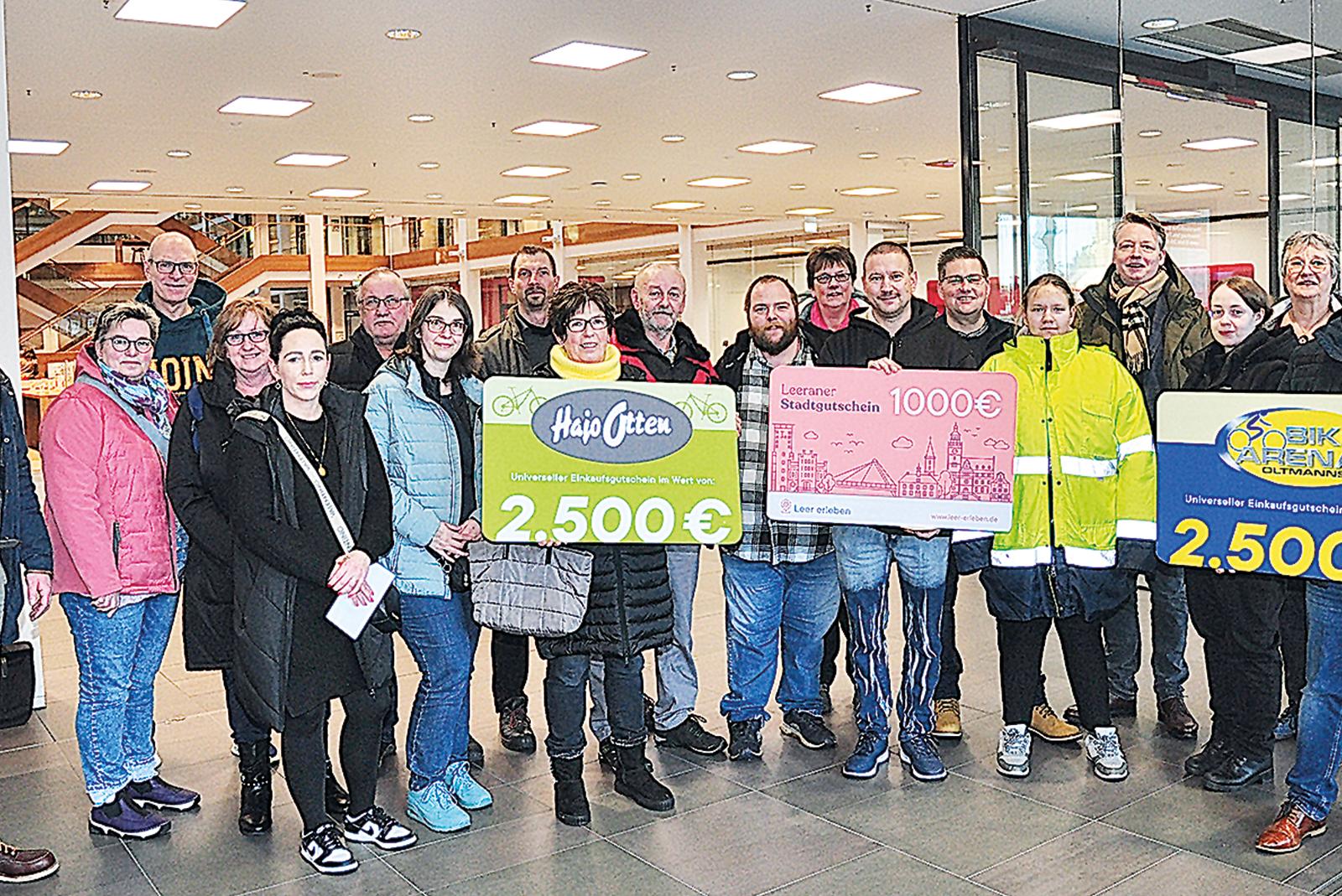 Bei der zweiten Gutscheinübergabe der Weihnachtsverlosung Leer konnte nun der Vorsitzende der Werbegemeinschaft Leer, Jan-Wilhelm Dörries, weitere glückliche Gewinner in der Sparkasse begrüßen. Dabei waren auch Christian Brahms, Vorsitzender der Lebenshilfe Leer, Gudrun Schulte vom Kinderschutzbund ...