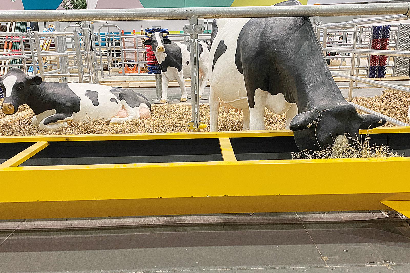 Grüne Woche mit lebensgroßen Kunststoffkühen