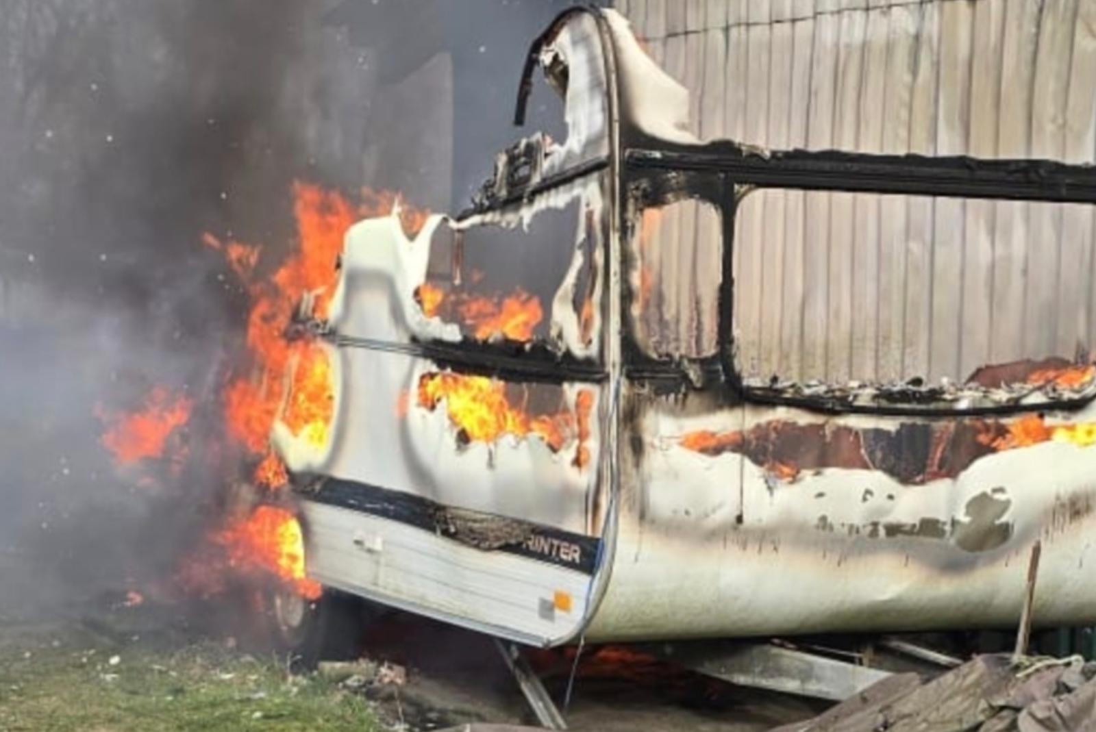 Wohnwagen in Flammen