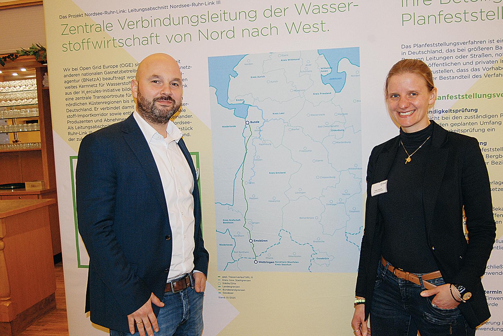 Mit einem »Dialogmarkt« in der Dorfgemeinschaftsanlage in Bunde hat der Gasnetzbetreiber Open Grid Europe (OGE) am Montag der Öffentlichkeit das Projekt »Nordsee-Ruhr-Link III« vorgestellt. Es geht dabei um einen Leitungsabschnitt mit etwa 122 Kilometern Länge, der in Bunde beginnt und ...