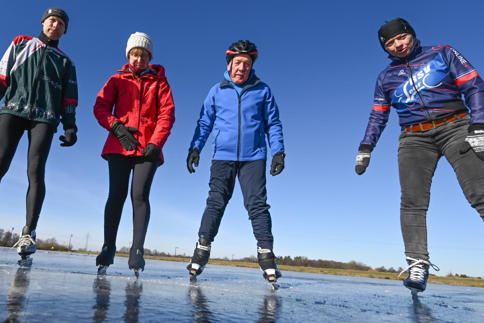 Kurz vor dem erwarteten Temperaturanstieg nutzen Schlittschuhläufer in Neermoor den letzten Frost, um auf gefrorenen Wasserflächen ihre Runden zu drehen. Dort hat der Sportverein Concordia wie jeden Winter eine Weide mit Wasser aus dem benachbarten Randkanal ...