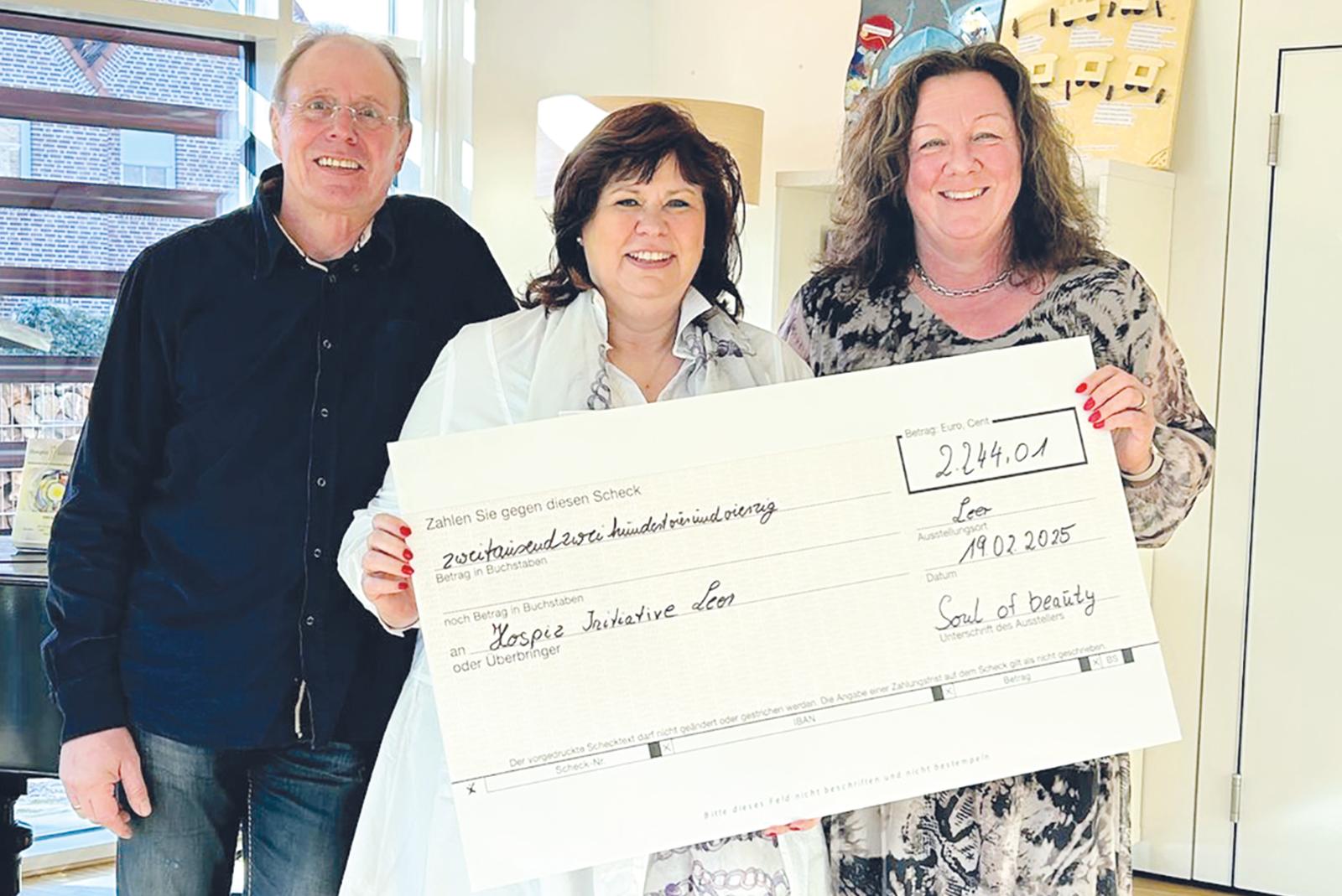 In Wymeer fand kurz vor Weihnachten der erste Scheunen-Zauber bei »Soul of Beauty« statt. Auf der Veranstaltung wurden Spenden zugunsten der Hospiz-Iniative in Leer gesammelt. 2244 Euro kamen dabei zusammen. Diese wurden kürzlich an Jutta Roettgers (rechts) von der Initiative ü...