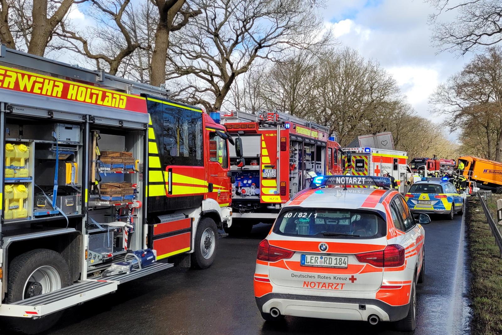 Ums Leben gekommen ist ein 44-jähriger Beifahrer eines Lkw bei einem schweren Verkehrsunfall am Mittwochvormittag auf der Bundesstraße 72 zwischen Hesel und Bagband. Ein weiterer Mann schwebt nach dem Unfall in Lebensgefahr und einer wurde schwer verletzt.