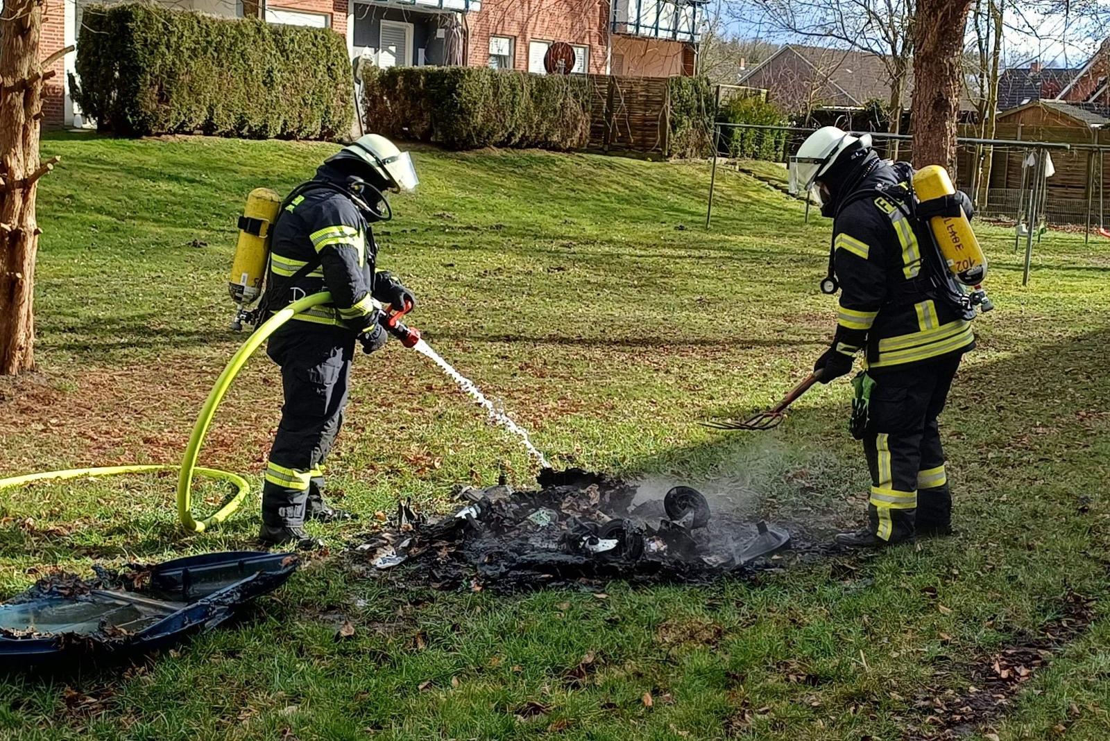 Anwohner hatten eine starke Rauchentwicklung sowie Flammen bemerkt und umgehend den Notruf gewählt. Die Feuerwehr Weener rückte daraufhin mit dem Hilfeleistungslöschgruppenfahrzeug (HLF 20) und dem Einsatzleitwagen (ELW) sowie mehreren Einsatzkräften zum Ort des Geschehens aus. Dank des schnellen Eingreifens der Feuerwehr konnte der Brand zügig mit Wasser aus dem Tank des Löschfahrzeugs gelöscht werden. Neben der Feuerwehr Weener war auch die Polizei vor Ort.