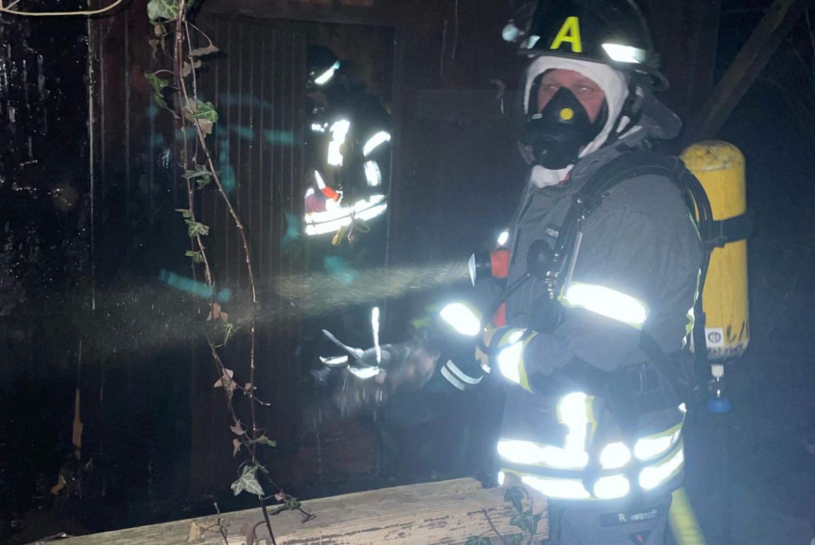 Feuerwehr löscht brennende Gartenhütte