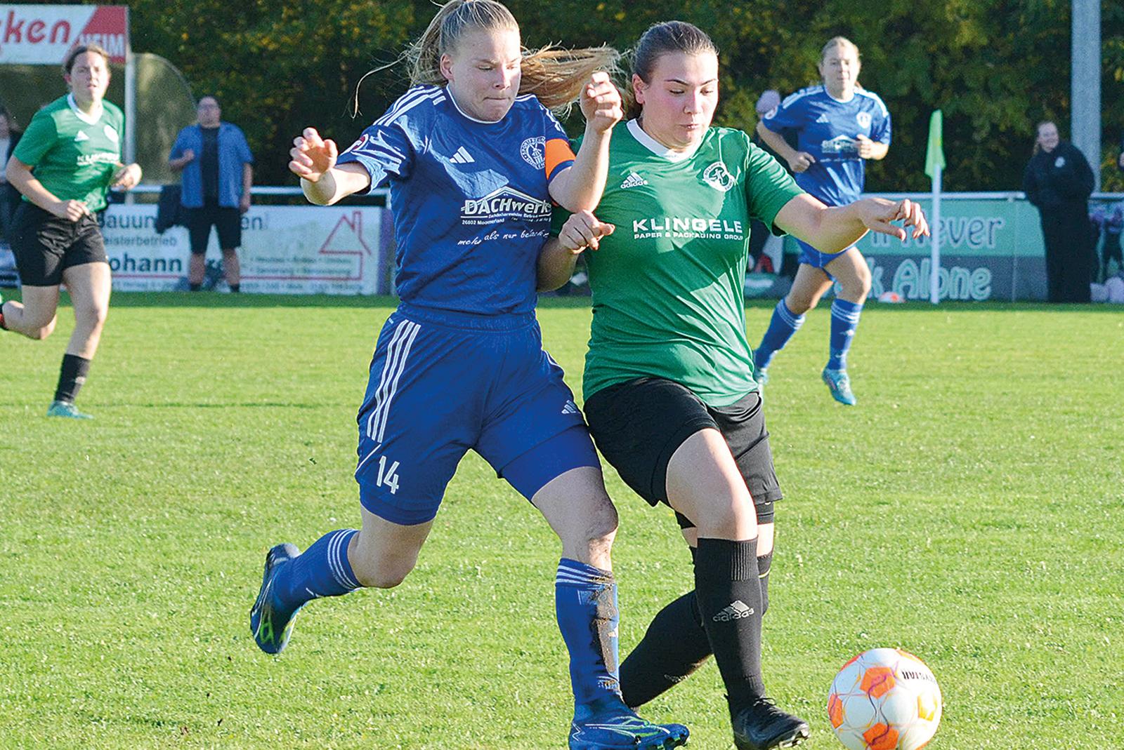 Die SG Leer 04/Bingum (grüne Trikots) will in der Rückrunde torgefährlicher werden. Stürmerin Wiebke Boelen ist dabei eine von mehreren Hoffnungsträgerinnen.  © Foto: Ammermann