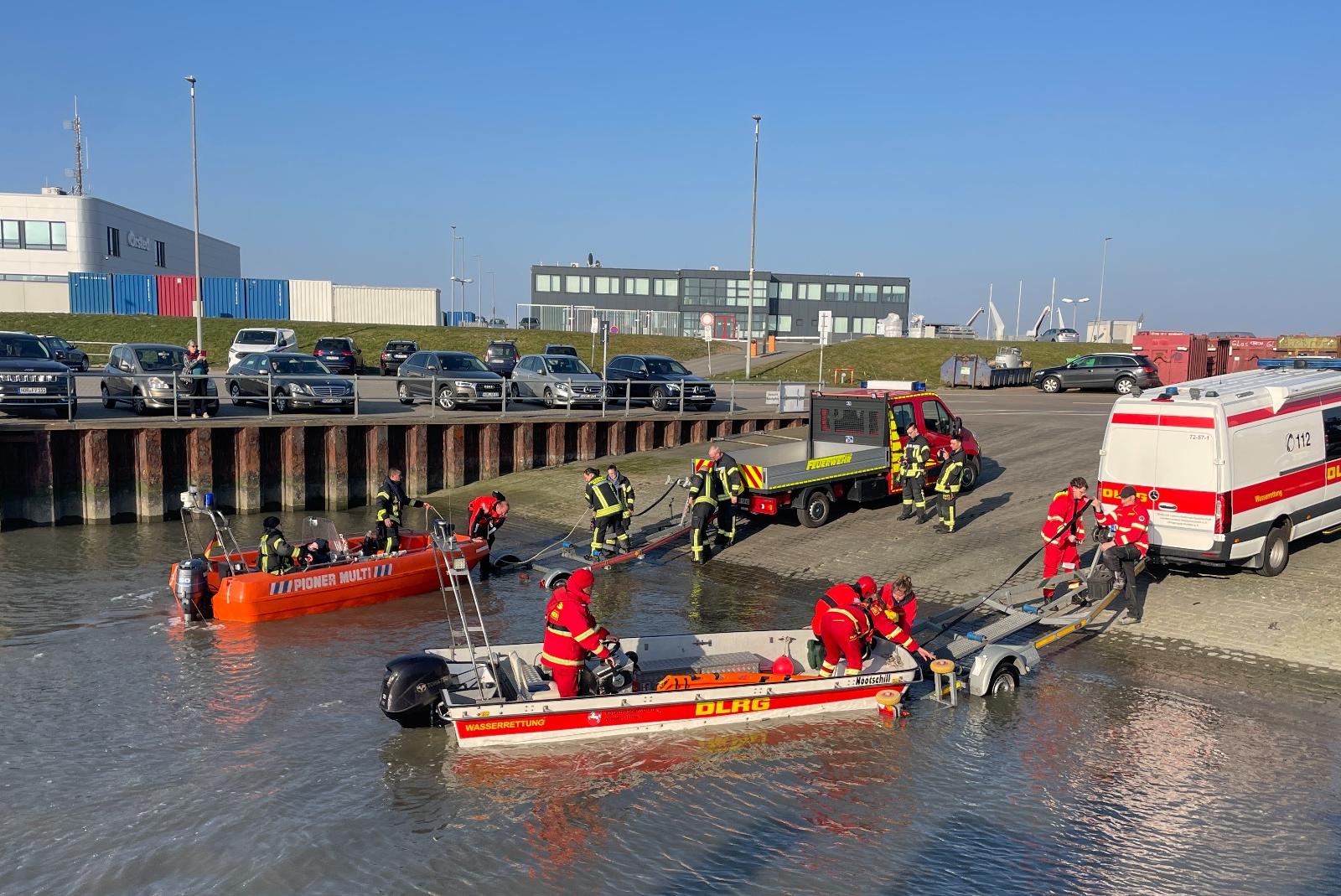 Nach Absetzen des Notrufs, rückte eine Vielzahl an Einsatzkräften von Feuerwehr, DLRG, DGzRS, Polizei und Rettungsdienst aus. Auch die Anforderung eines Rettungshubschraubers mit Seilwinde stand im Raum. Die Einsatzkräfte konnten den Wassersportler mit einem Fernglas sichten. Stark ablandiger Wind und ablaufendes Wasser schienen den Surfer weiter abzutreiben.