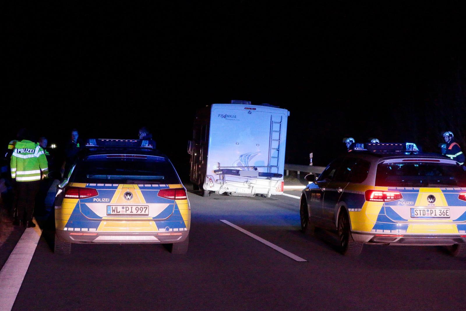 Auf der Autobahn habe das Wohnmobil teilweise beide Fahrspuren genutzt und wiederholt abgebremst. Den Beamten zufolge stoppte der 72-Jährige in der Nähe der Anschlussstelle Jork, der Fahrer legte den Rückwärtsgang ein und rammte einen Streifenwagen. Ein Polizist sei leicht verletzt worden. Sein Kollege stieg laut Mitteilung aus und feuerte einen Schuss in die Reifen des Campers, um die Irrfahrt zu stoppen. Trotz beschädigter Reifen fuhr der 72-Jährige demnach zunächst weiter und rammte einen weiteren Streifenwagen, der sich auf der Fahrbahn links neben ihm befand. Die beiden Polizisten in diesem Wagen seien auch leicht verletzt worden. Nach einigen hundert Metern sei das Wohnmobil schließlich liegen geblieben.