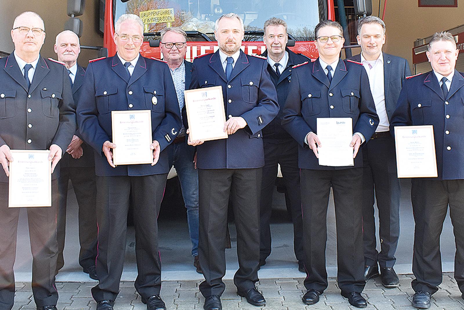 Vier Ernennungsurkunden und eine schriftliche Beauftragung überreichte Bürgermeister Uwe Sap am Freitag an fünf Mitglieder der kommunalen Feuerwehr Bunde. Zuvor hatte der Gemeinderat als höchste Instanz den Vorschlägen der jeweiligen Ortswehren zugestimmt.