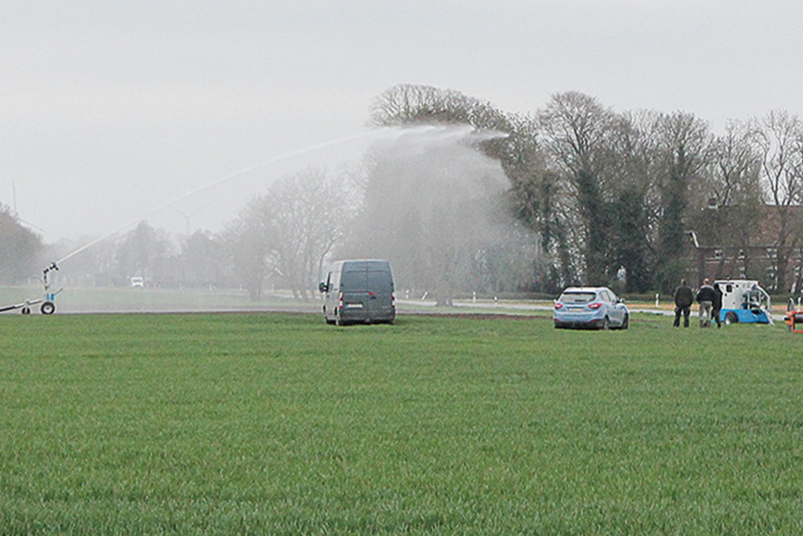 Solche Bilder kennt man sonst eher aus dem Hochsommer: Weil die Niederschläge im Rheiderland seit mehreren Wochen ausbleiben, haben manche Ackerbauern mit einer Beregnung ihrer Polderflächen begonnen. Wegen des langsamen Graswuchses machen sich auch einige Grünlandbauern inzwischen ...