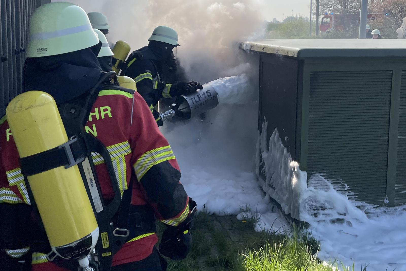 Feuerwehr löscht brennenden Trafo