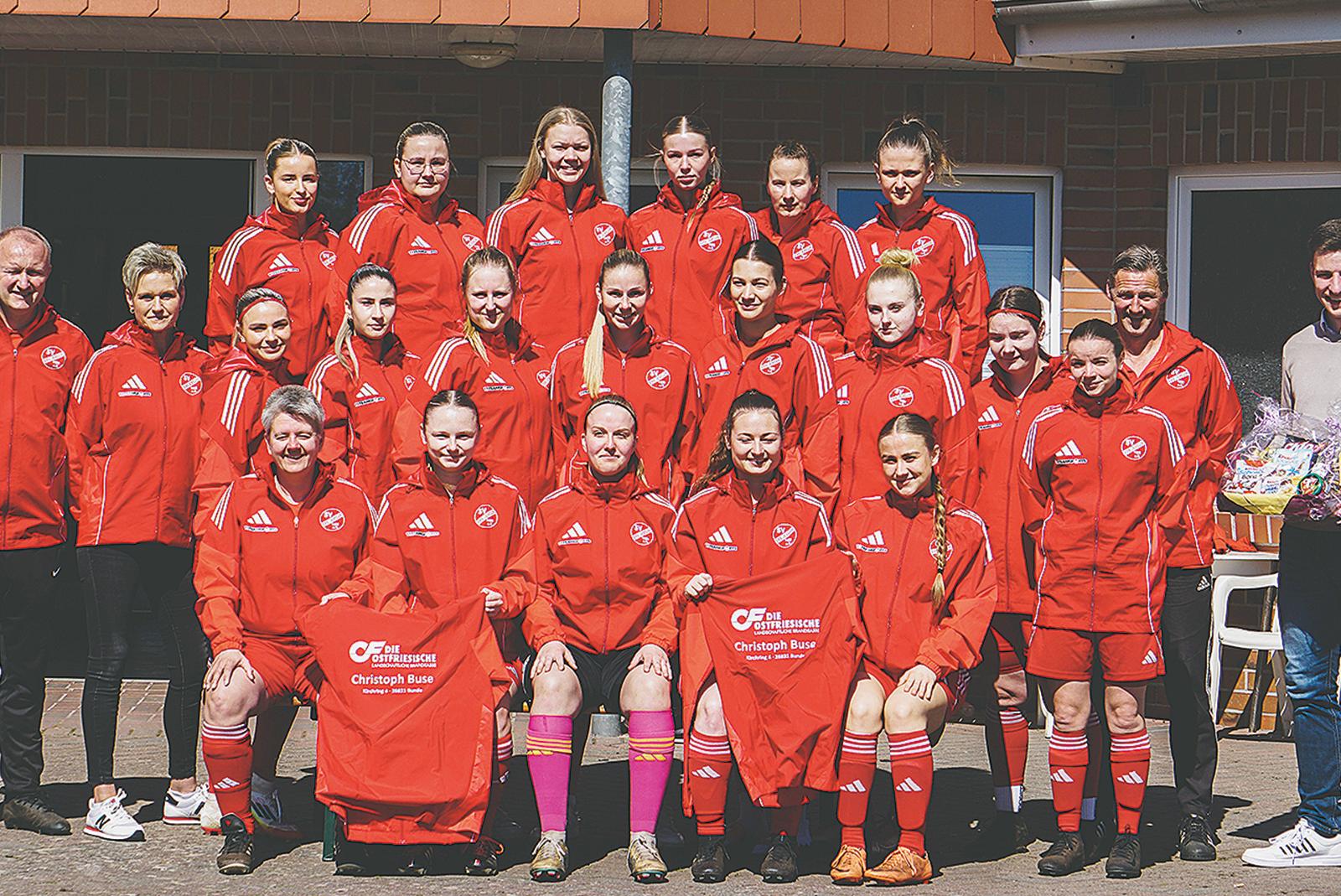 Die Bezirksliga-Fußballerinnen des SV Ems Jemgum haben vor dem Spiel gegen Aurichs U20 neue Regenjacken von der Ostfriesischen Landschaftlichen Brandkasse aus Bunde bekommen. Sponsor Christoph Buse, Leiter der Geschäftsstelle am Kirchring in Bunde, bekam zum Dank einen Prä...