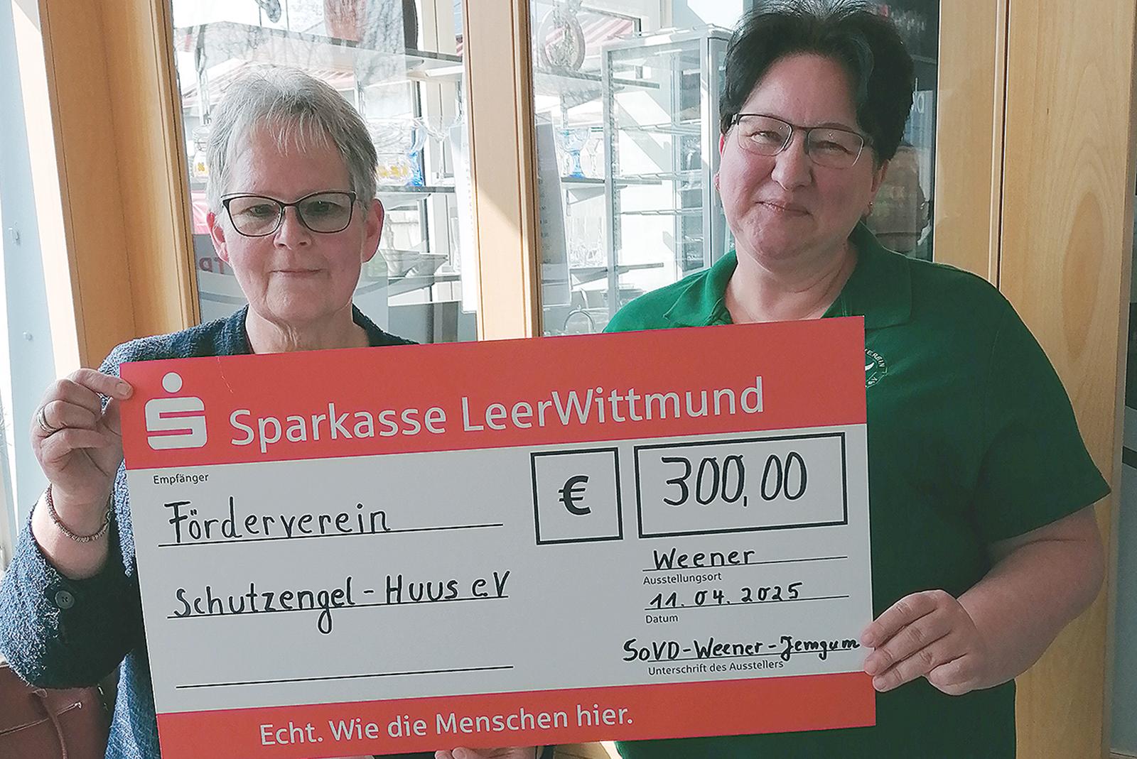 Im Rahmen eines Frühstücks im Flugplatz-Restaurant in Nüttermoor hat der Ortsverband Weener-Jemgum des Sozialverbands Deutschland (SoVD) eine Spende in Höhe von 300 Euro an das Remelser »Schutzengel-Huus Michael« überreicht. Die Ortsverbandsvorsitzende Hildegard Hinderks übergab den symbolischen Scheck ...