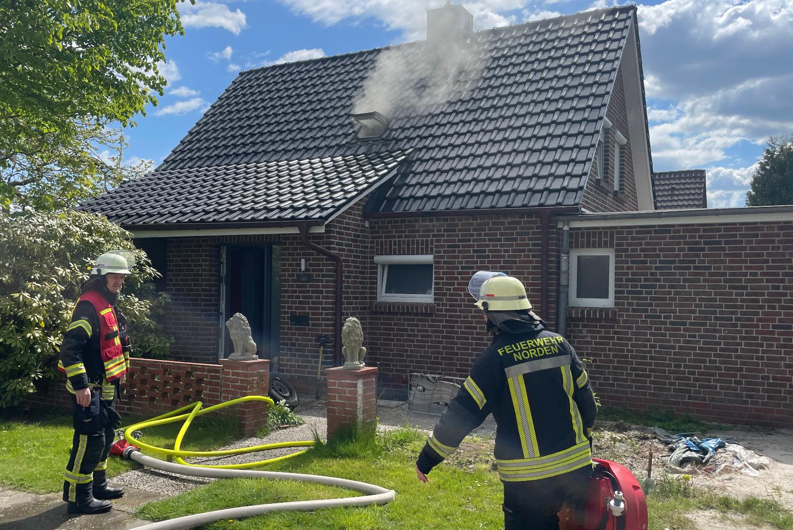 In einem Kinderzimmer eines Einfamilienhauses an der Boberstraße in Norden-Tidofeld ist es am Donnerstagmittag zu einem Brand gekommen. Wie die Feuerwehr mitteilte, befand sich eine Mutter mit ihrem jungen Sohn im Erdgeschoss des Wohnhauses, als um 12.15 Uhr ein Heimrauchmelder im Dachgeschoss auslöste. Als die Frau dem Alarmton nachging, entdeckte sie Brandrauch im Treppenhaus. Die Mutter behielt einen kühlen Kopf und handelte vorbildlich, so die Feuerwehr. Gemeinsam mit ihrem Sohn und zwei Hunden verließ sie das Haus und setzte einen Notruf ab. Anschließend wartete sie an der Straße auf die anrückende Feuerwehr.