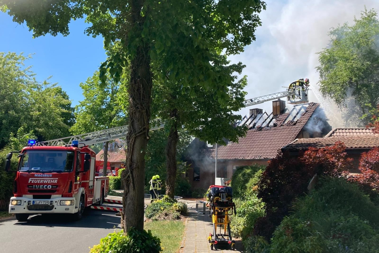 Heute Mittag ist in einem Wohnhaus in Papenburg ein Feuer ausgebrochen. Die Löscharbeiten dauerten am Nachmittag an. Auch die Feuerwehr Weener wurde alarmiert.