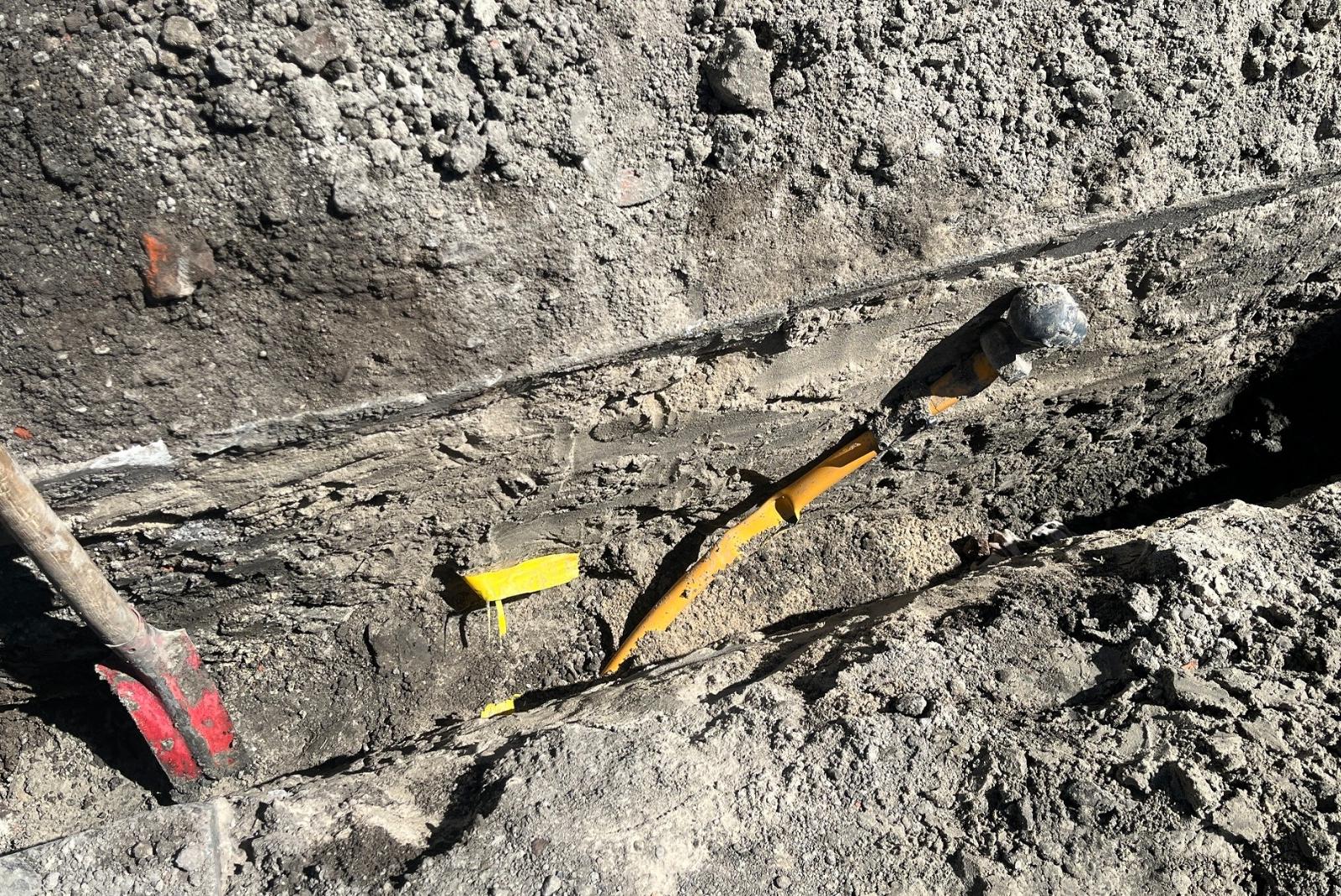 Diese Gasleitung wurde bei Bauarbeiten beschädigt, mit hohem Druck trat daraufhin Gas aus.