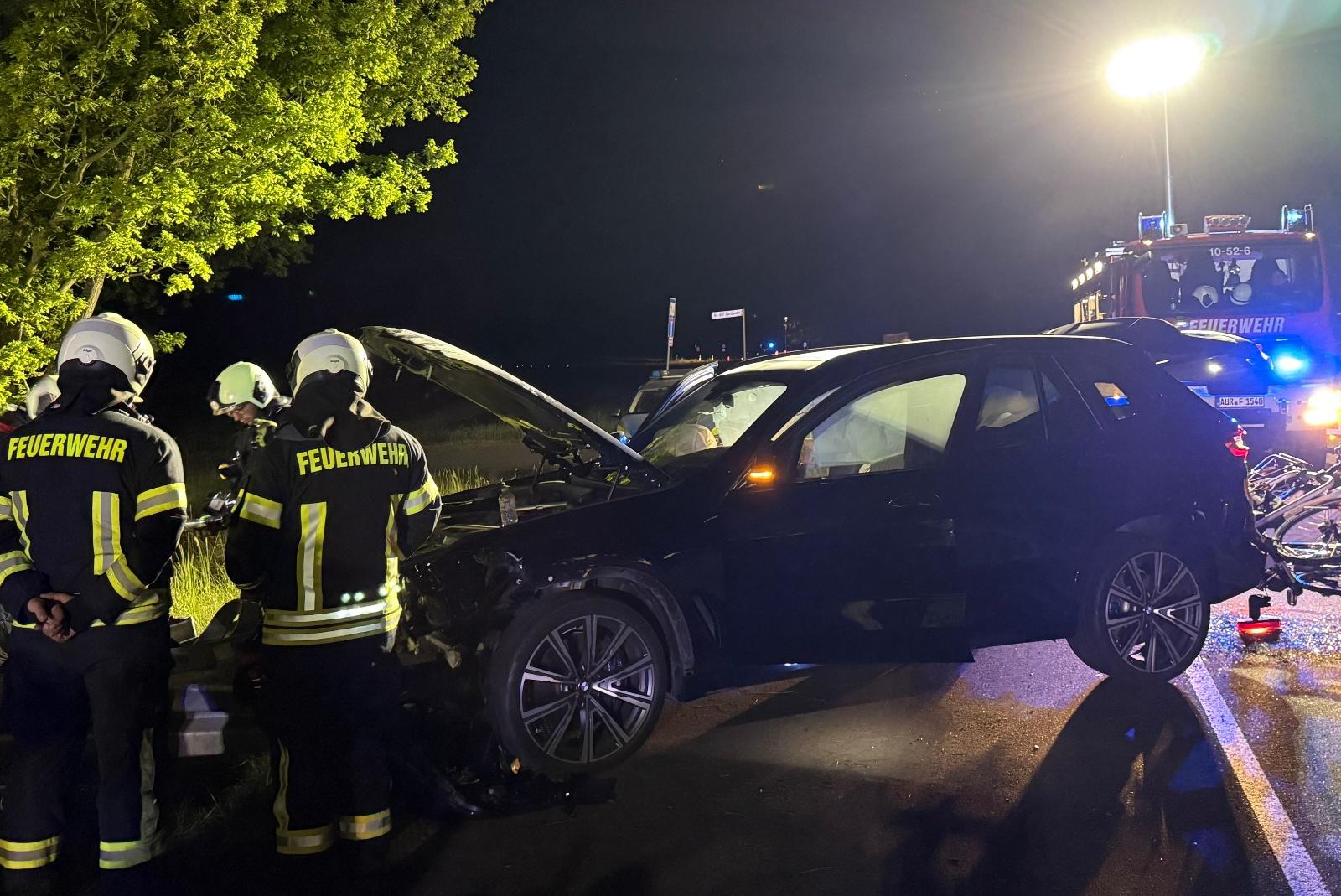 Rettungsdienst, Polizei und Feuerwehr sind in der Nacht zu Samstag an die Esenser Straße in Aurich-Plaggenburg zu einem schweren Verkehrsunfall gerufen worden. Die Beteiligten hatten Glück im Unglück.