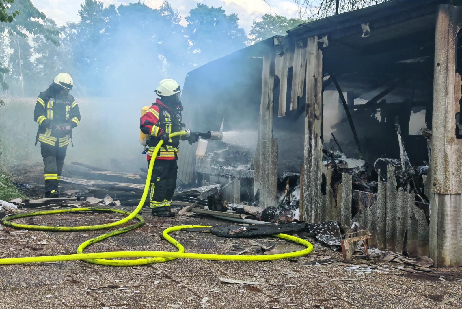 Das Löschen eines Schuppenbrandes in Ihren (Westoverledingen) stellte die Feuerwehr am Montagnachmittag vor einige Herausforderungen.