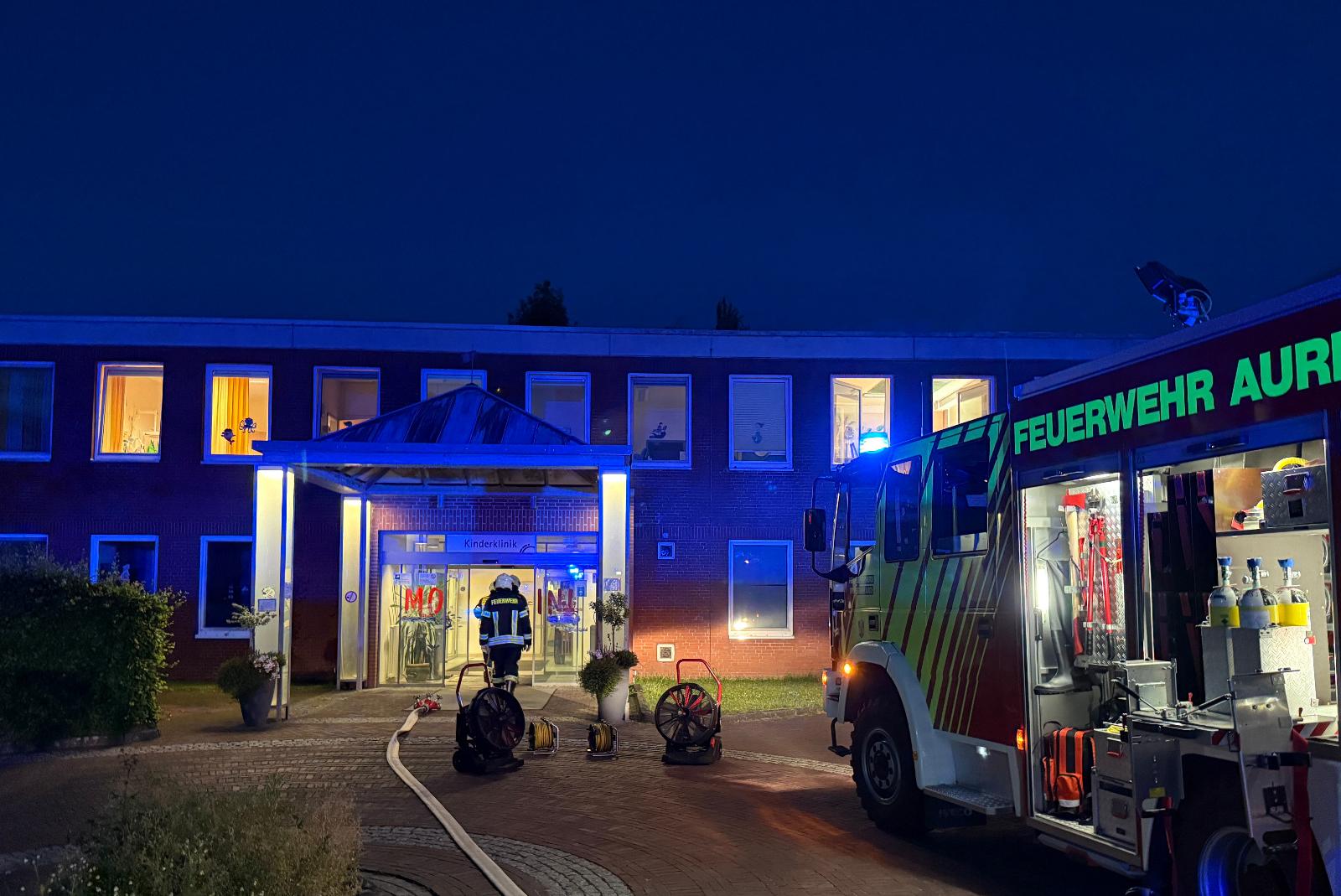 © Feuerwehr AurichAls das Feuer bereits nach etwa einer halben Stunde bekämpft und der einschlägige Löscherfolg mit Hilfe einer Wärmebildkamera überprüft war, leiteten die Feuerwehrleute eine umfangreiche Belüftung der Stationsräumlichkeiten ein, um diese vom Rauch zu befreien und das tatsächliche Schadensausmaß deutlich zu machen. Durch den gezielten Einsatz konnte der Brand auf die Lagerstätte beschränkt werden, heißt es in der Pressemitteilung. Aufgrund der Verrußung musste die Station jedoch vorerst geschlossen bleiben. Während die Patienten der Kardiologie daraufhin in anderen Bereichen des Krankenhauses untergebracht wurden, gab die Feuerwehr die Kinderklinik nach gut einer Stunde wieder frei.