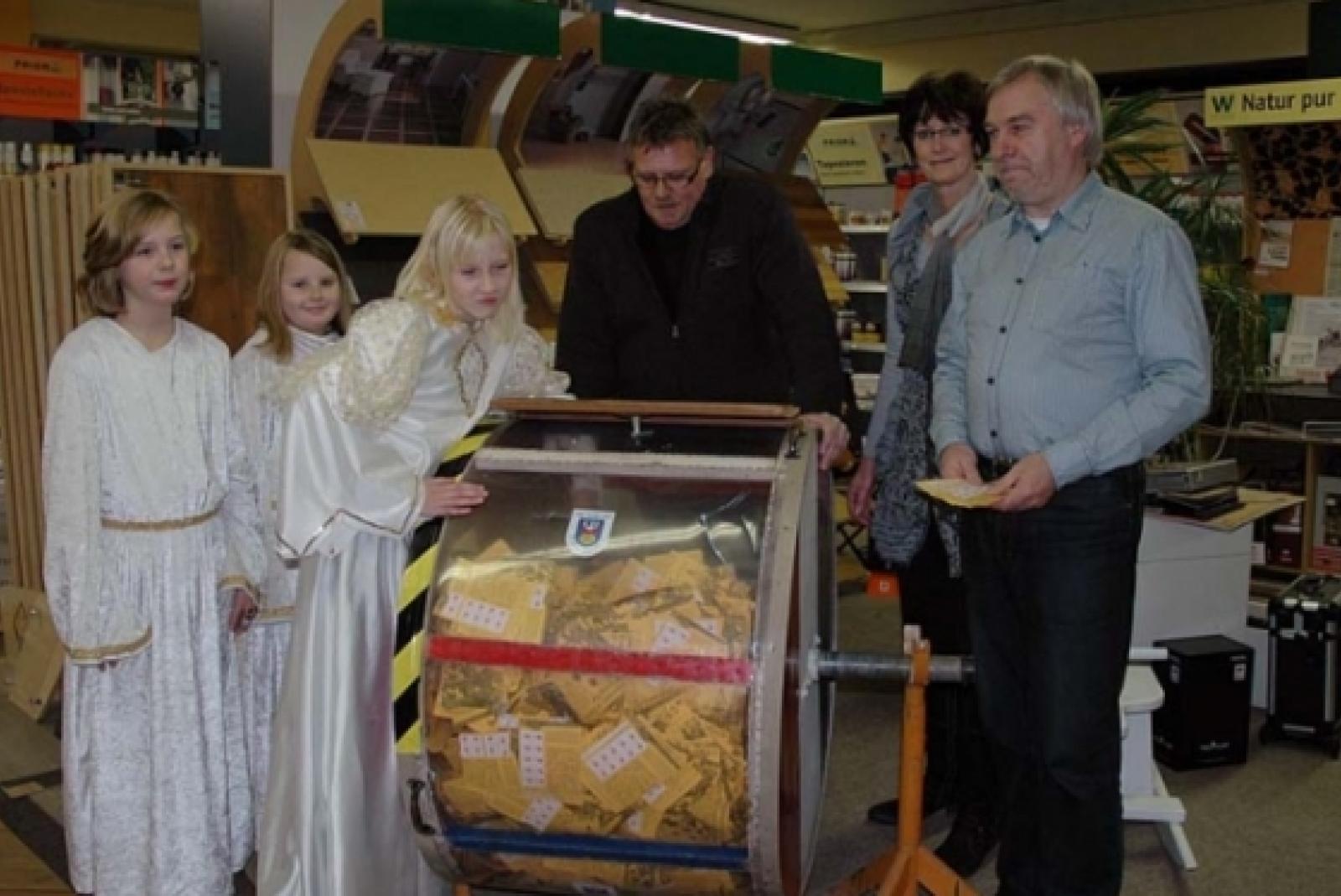 Tief hineingreifen in die Lostrommel mussten die drei »Weihnachtsengel« Ineke Loesing, Valea Voss und Anna Pastoor. Für die Weihnachtsverlosung der Werbegemeinschaft Weener zogen die drei am Dienstagabend die 30 Gewinner der Endauslosung in den Räumen von Hakens Farben-Tapeten-Teppich-Center ...