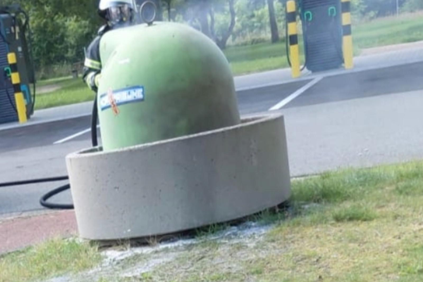Feuerwehr löscht brennenden Mülleimer