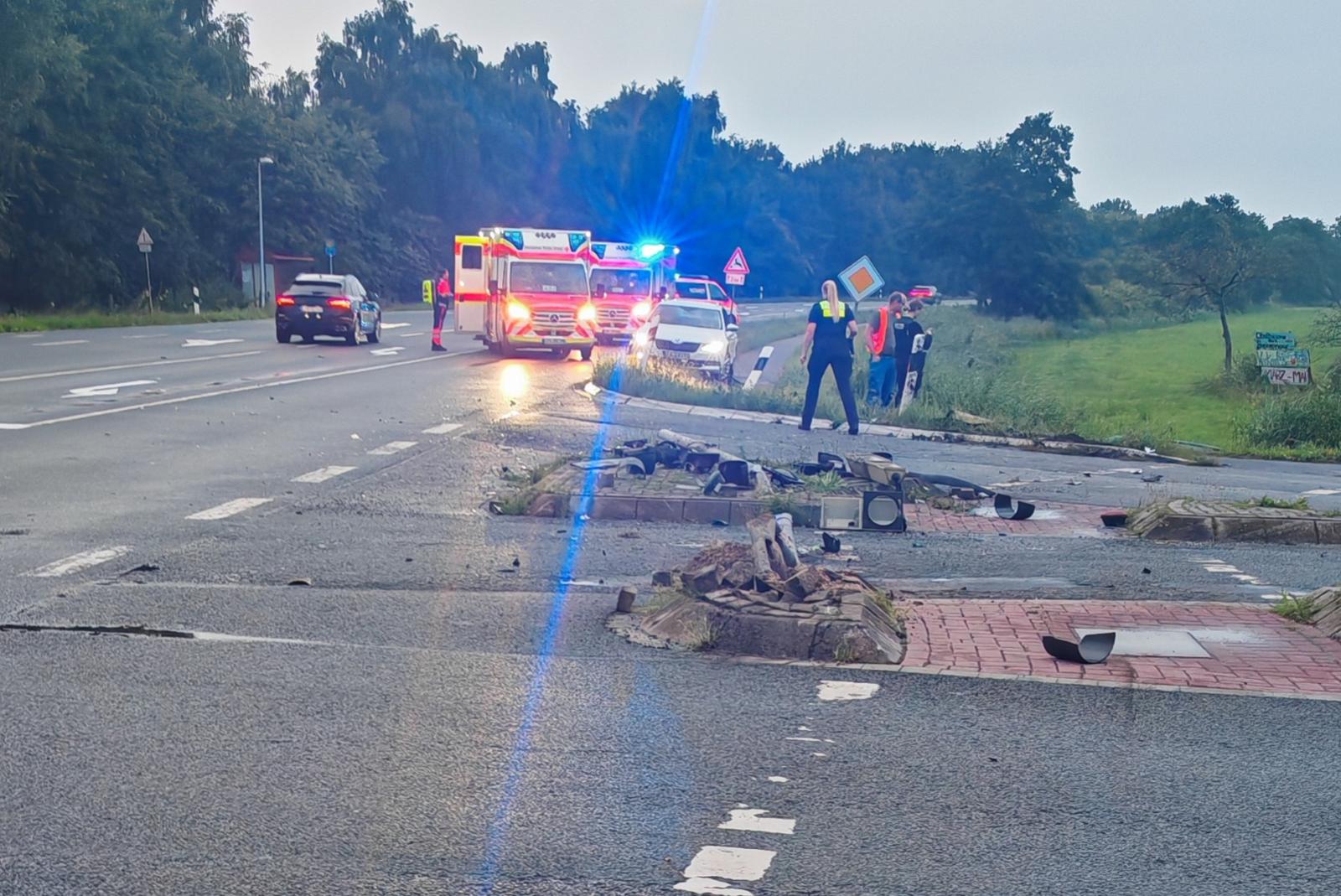 Vier Verletzte gab es am Dienstag Abend bei einem Unfall in Breinermoor. An der Unfallstelle bot sich ein Bild der Verwüstung.