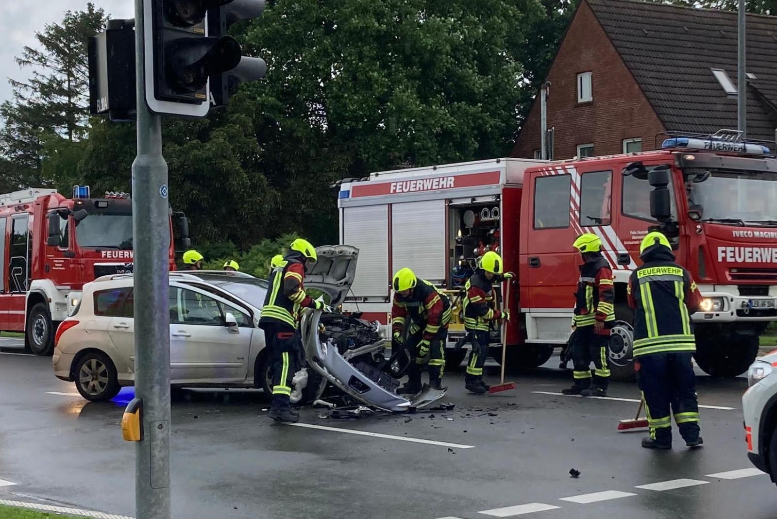 Die Feuerwehr Warsingsfehn wurde am Mittwoch um 8.52 Uhr zu einem Verkehrsunfall auf der Landesstraße 14 beim Knotenpunkt alarmiert. Zwei Fahrzeuge waren auf der Kreuzung zusammen gestoßen, wobei ein schwer verletzter Beteiligter im Fahrzeug eingeklemmt war und von der Feuerwehr mittels hydraulischem Gerät befreit werden musste. Er wurde zur weiteren Behandlung ins Klinikum Leer eingeliefert.