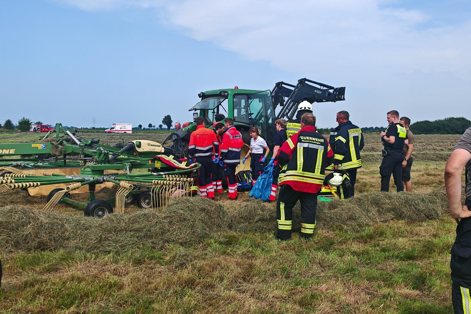 Landwirt stürzt in Maschine und verletzt sich