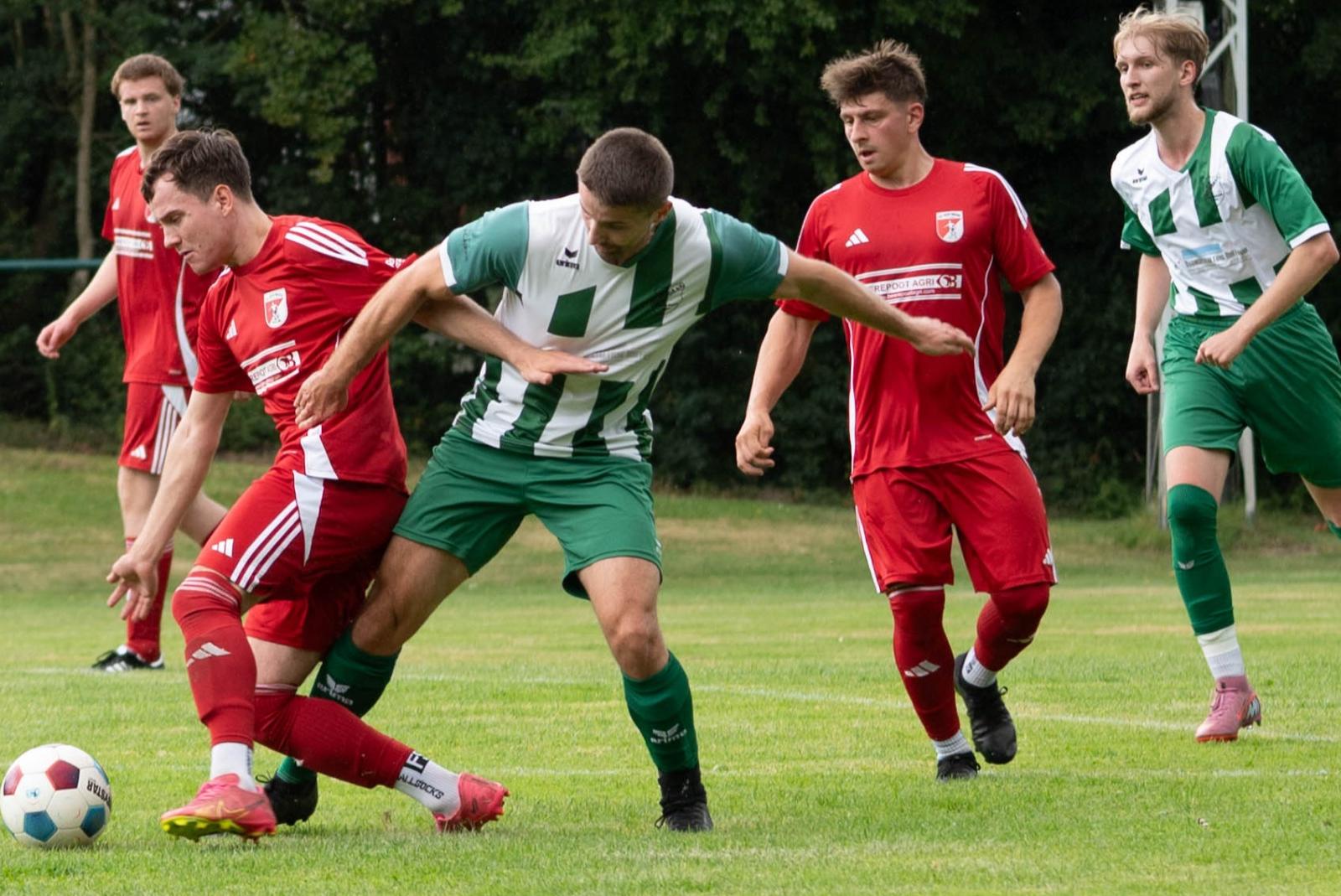 Hier muss Stapelmoors Matthias Dreese Nortmoors Fabian Krause ziehen lassen, am Ende siegte aber die Teutonia. © Lohmann