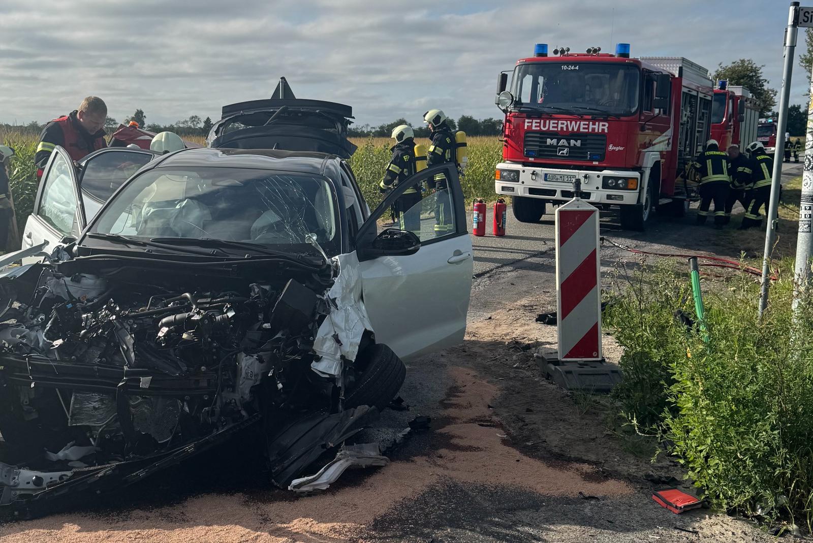 Bei einem Verkehrsunfall in Aurich sind am Dienstag drei Menschen verletzt worden. Ein 20-jähriger Mann aus Westerholt fuhr gegen 17 Uhr mit seinem Toyota Yaris auf der Siedlerstraße. Auf Höhe des Dammweges kam es zum Zusammenstoß mit dem Mercedes Sprinter-Pritschenwagen eines 30-jährigen Mannes aus Eversmeer, der den Dammweg befuhr. Durch den Zusammenstoß wurden die beiden Fahrer sowie der 41-jährige Beifahrer im Sprinter leicht verletzt. Bei Unfallauto handelte es sich um einen Hybrid-PKW, dessen Hochvoltbatterie aber schon durch die Auslösung der Airbags automatisch abgeschaltet worden ist. Um eine Gefährdung der Umwelt auszuschließen, kontrollierten die Einsatzkräfte einen großen Dieseltank auf der Ladefläche des Pritschenwagen, von dessen etwa 250 Litern Inhalt jedoch nichts ausgetreten war. Aus dem Unfallwagen liefen dagegen Betriebsstoffe aus, die von den Feuerwehrleuten mit Bindemittel abgestreut wurden, ehe eine Fachfirma die letztendliche Reinigung der Fahrbahn übernahm.