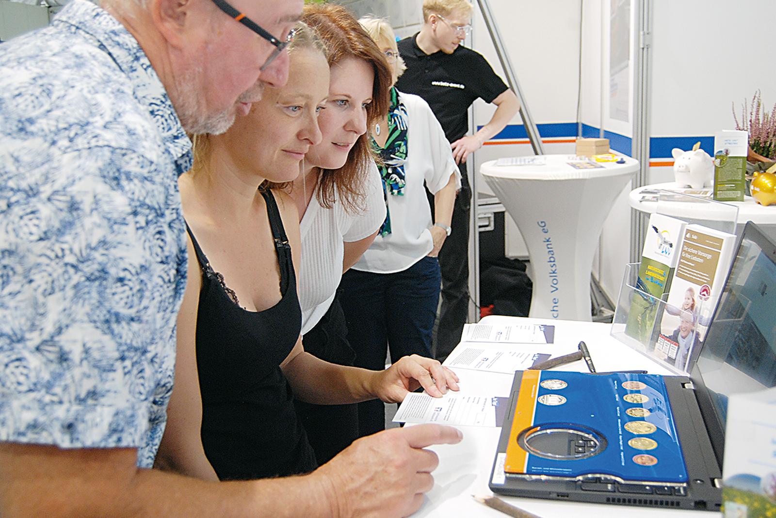 Spiel, Spaß und Spannung - auch das gab es auf der elften Gewerbeschau in der Landsburghalle in Weener am Wochenende. Unser Foto enstand auf dem Stand der Ostfriesischen Volksbank, wo ein spezielles Schätzspiel auf die Besucher wartete. Ziemlich genau ...