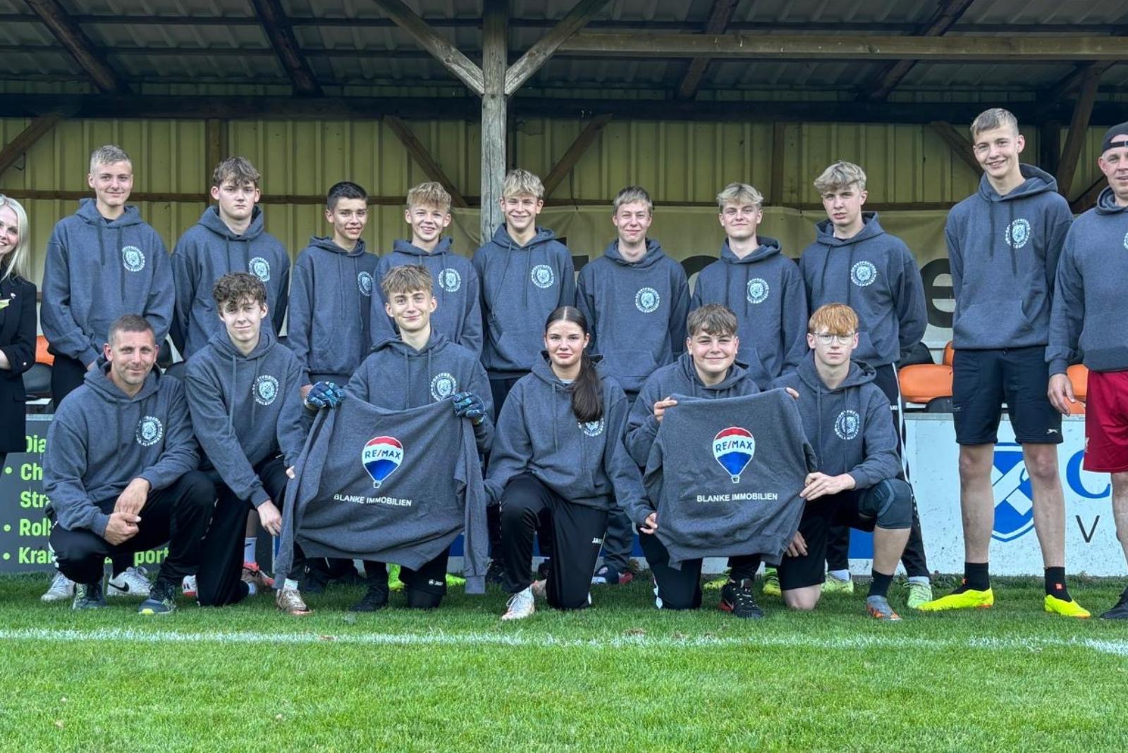 Die B-Junioren der JSG Möhlenwarf/Wymeer dürfen sich über neue Pullover freuen. Sponsorin war in diesem Natalie Blanke aus dem Remax Immobilien-Team Leer/Papenburg. »Wenn schon Werbung, dann möchte damit auch etwas Gutes tun«, sagte Blanke, die ...