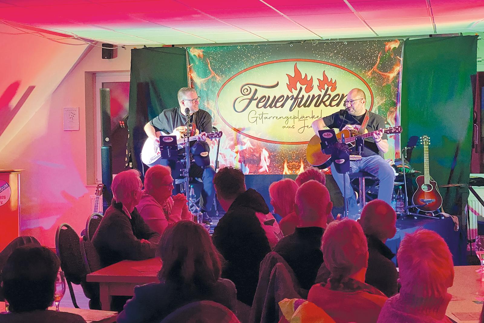 Mit 50 Besuchern war das Vereinsheim des SV Ems-Jemgum am Samstagabend zwar nicht brechend voll, doch das tat dem Vergnügen mit den »Feuerfunken« keinen Abbruch. Sowohl die Gäste als auch die Musiker Oliver Funk aus Jemgum und Jens Feuerhake ...