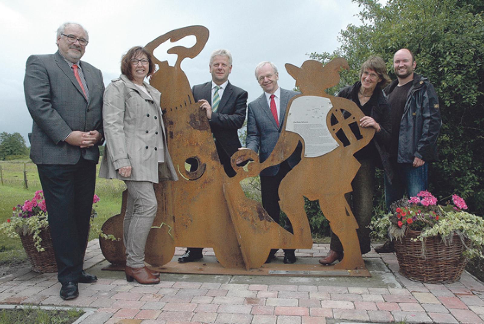 Der Kulturtourismus im Rheiderland hat einen weiteren Impuls bekommen. Gestern wurden zwei künstlerisch gestaltete Informationstafeln, die nahe der ehemaligen Festungsanlagen auf die Dieler Schanzen und zugleich auf die Dauerausstellung zum Thema im Heimatmuseum in Weener hinweisen, ihrer Bestimmung übergeben.