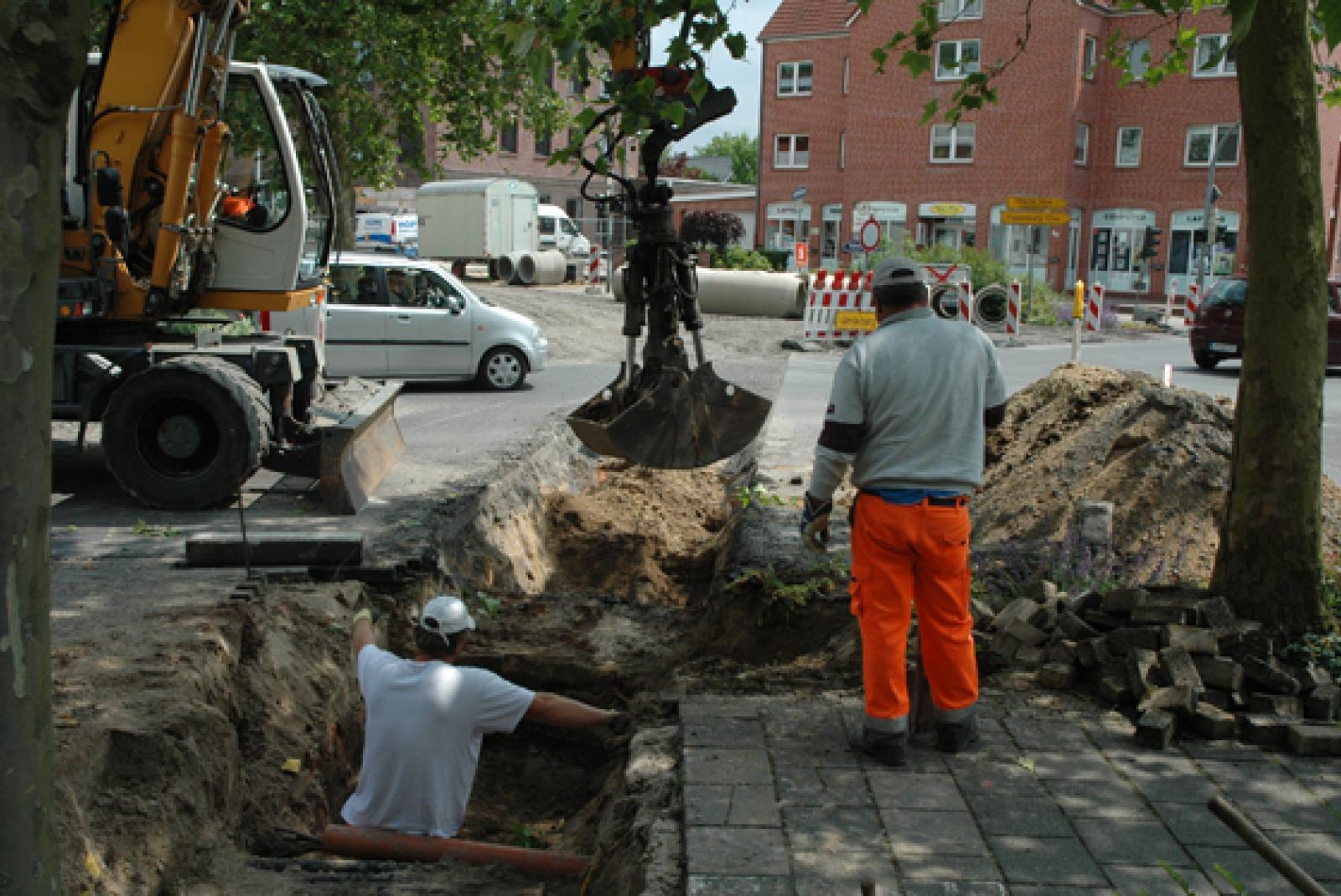 Im Zuge der Neugestaltung der Westerstraße in Weener wird auch die Regen- und Schmutzwasserkanalisation erneuert. Vorbereitende Arbeiten für den Austausch der Rohre haben am Mittwoch auf der Kreuzung an der Ecke Risius-/Bahnhofstraße begonnen.