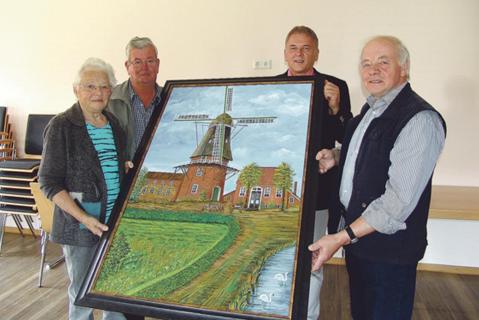 Ein neues Schmuckstück hängt seit Donnerstag im Dorftreff in Wymeer. Künstler Monne de Vries aus Ditzumerverlaat hatte mehrere Monate an einem Bild der »Steenblockschen Mühle« gemalt. Vorlage für das Kunstwerk war ein altes schwarz-weiß Foto.