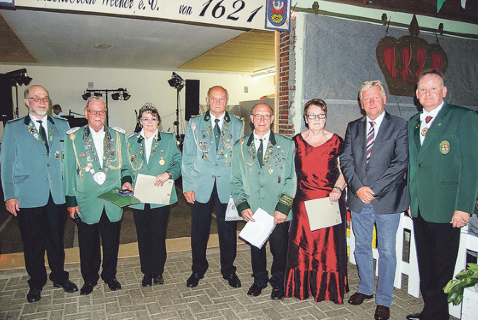 Als Präsident des Ostfriesischen Schützenbundes hat Detlef Temmen jetzt zum Auftakt des Schützenfestes in Weener auch einige verdiente Schützen des Gastgeber-Vereins geehrt.