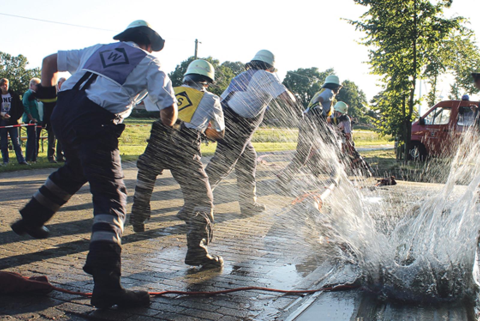 Eine spritzige Angelegenheit war auch in diesem Jahr der Schnelligkeitswettbewerb der Rheiderländer Feuerwehren in Weenermoor am Freitag. Die Wehr aus Wymeer-Boen setzte sich hier gegen die Konkurrenten aus den Nachbargemeinden durch.