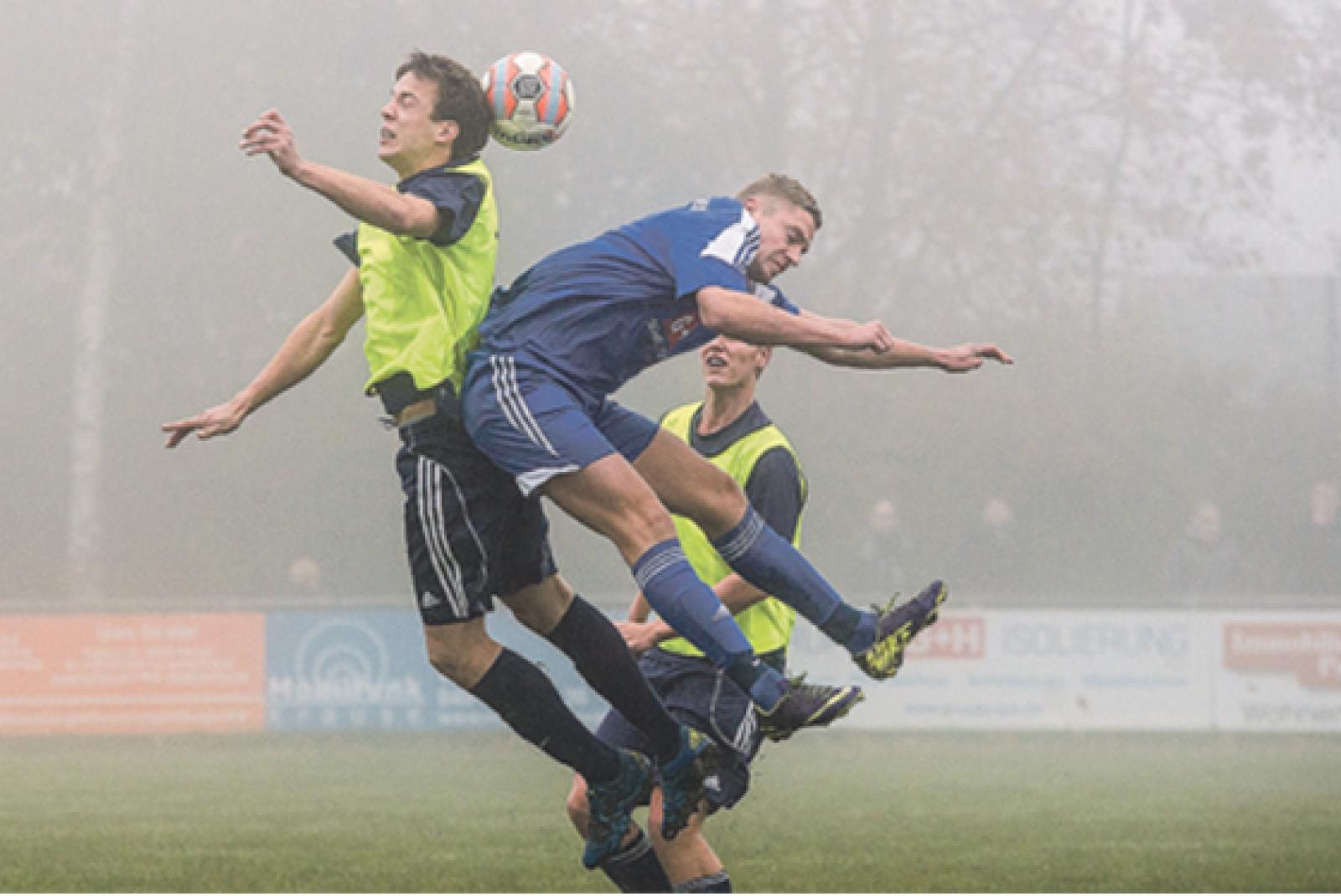 Verdrängungskampf im Mittelfeld der Ostfrieslandklasse B: Nicht nur die Heidjer um Hendrik Bock (l.) und die Holthuser um Alexander Meyer liegen eng beieinander. © Foto: Mentrup