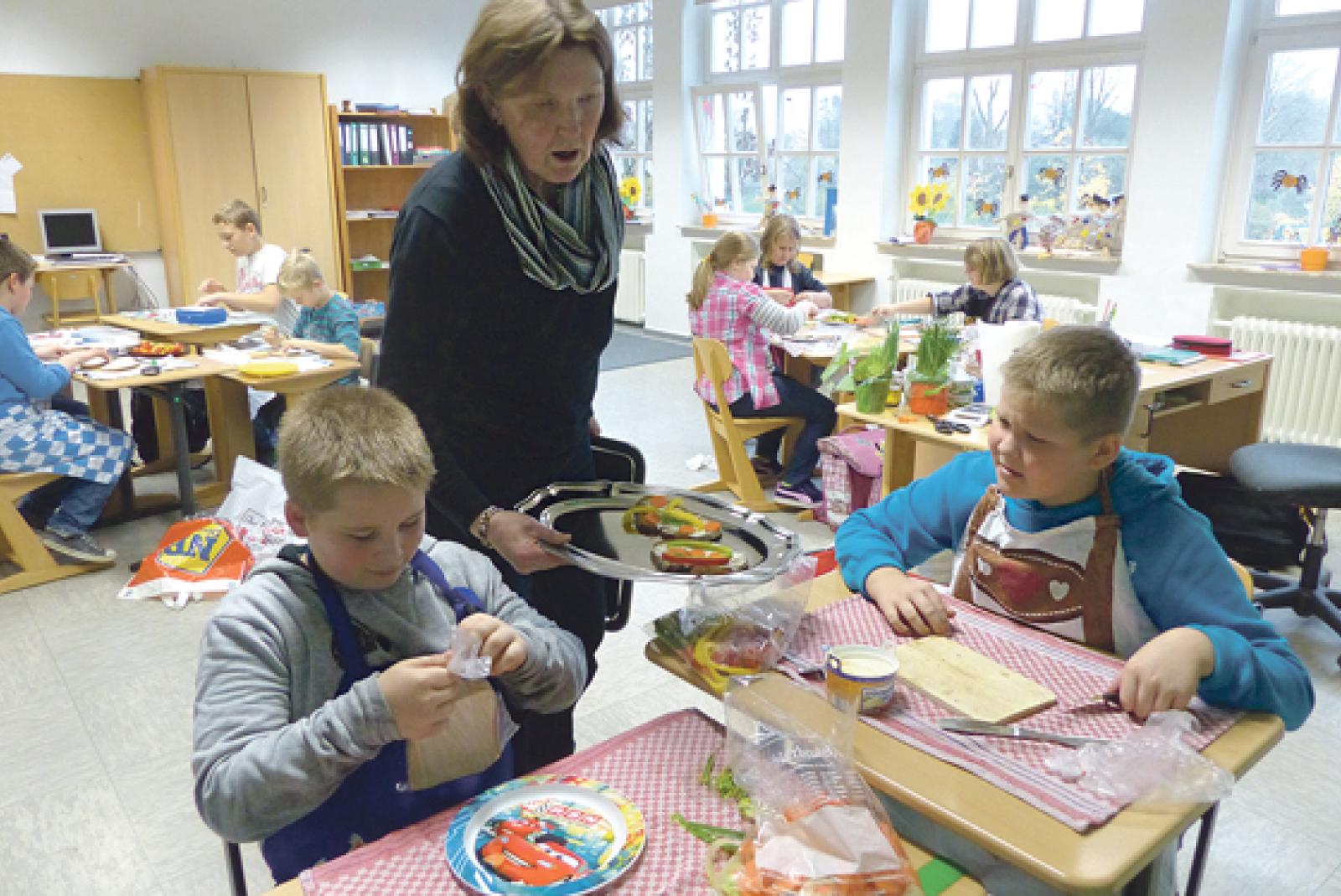 Fünftklässler der Pestalozzischule Weener lernen den Umgang mit Lebensmitteln