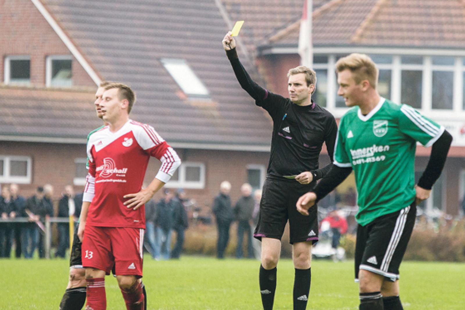 Gelbe Karten mussten die Schiedsrichter an Jemgum und Bingum nur selten verteilen. Martin Brandt kam im Derby im Oktober aber nicht ganz ohne Verwarnung aus. © Foto: Mentrup